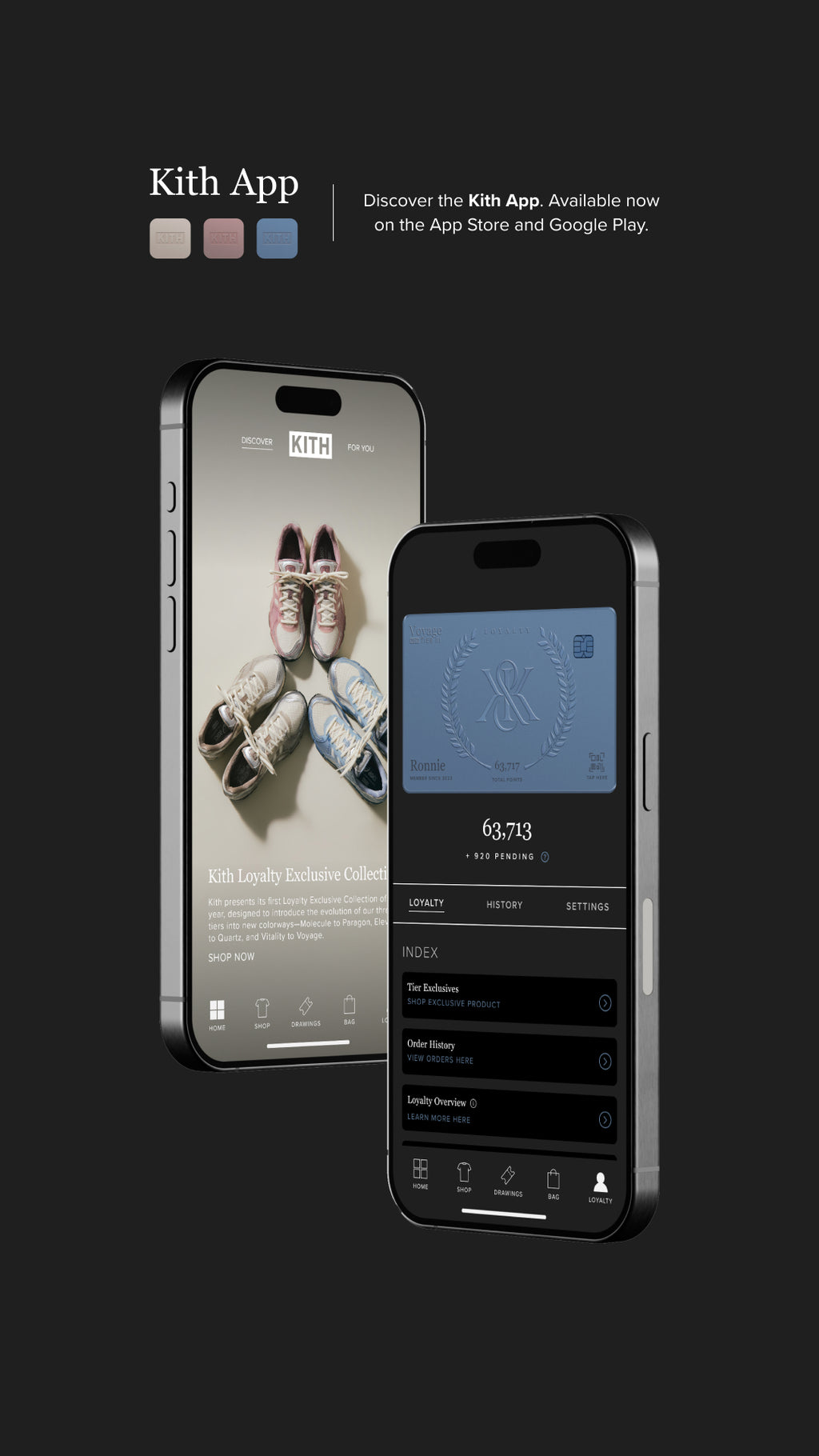 Coordinating lounge sets designed as a gifting staple, made from rayon-blend jersey and Kith branding details.