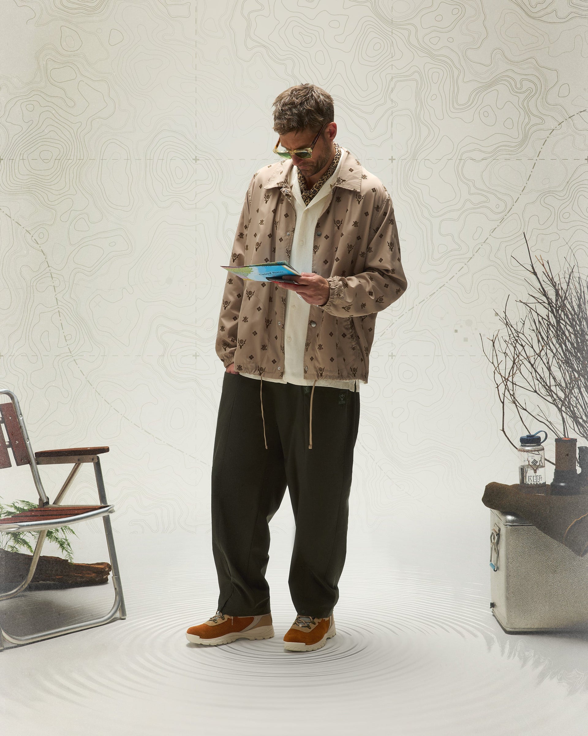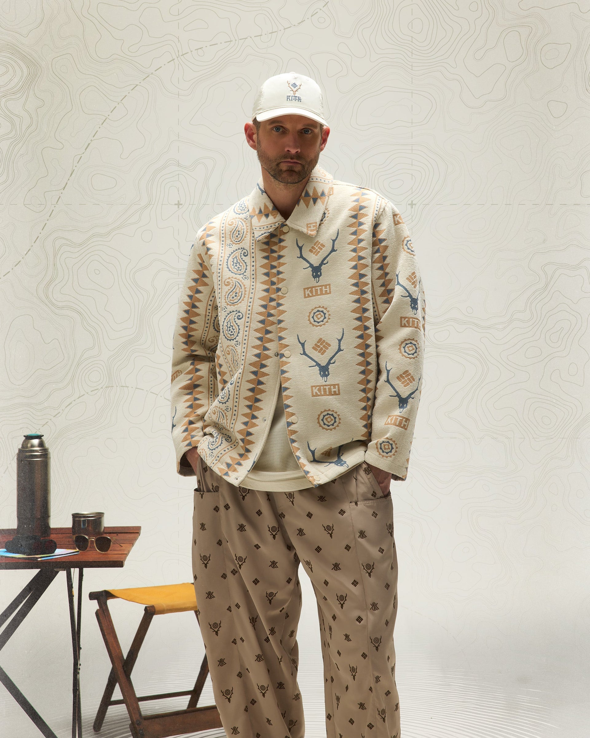 Lifestyle and utility outerwear silhouettes, crafted from premium nylon and polyester, include the Tapestry Coaches Jacket, Flocked Monogram Coaches Jacket and Multi Pocket Jacket. Each style features a different variation of the all-new tri-branded Kith & South2 West8 for Columbia logo.
