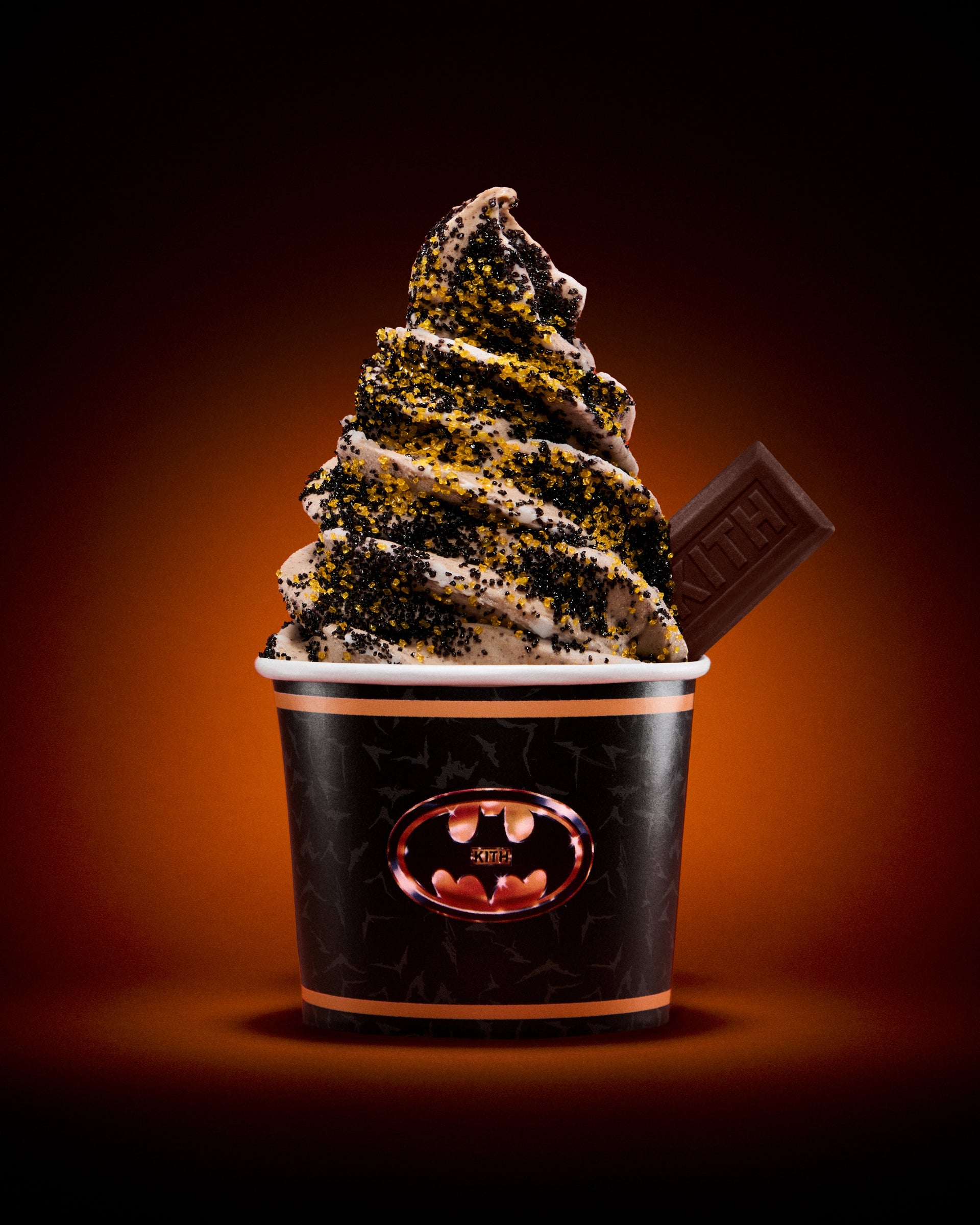 To commemorate the release of the upcoming Batman | Kith collection, Kith Treats has crafted a limited edition ice cream special entitled The Vengeance. Featuring a blend of their classic chocolate and vanilla ice creams infused with Cap'n Crunch, Chocolate Cake Crunch and Crushed Oreos, the swirl and milkshake duo are each topped with black and yellow sanding sugar as a tribute to the superhero's signature colorway.