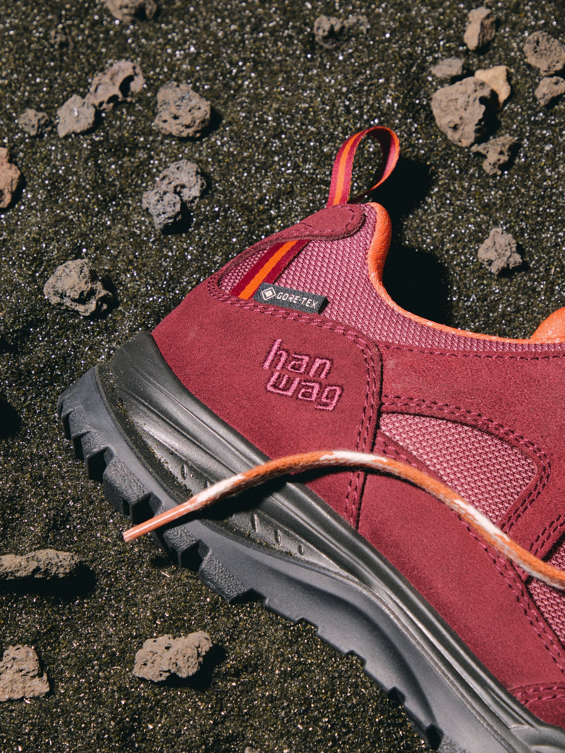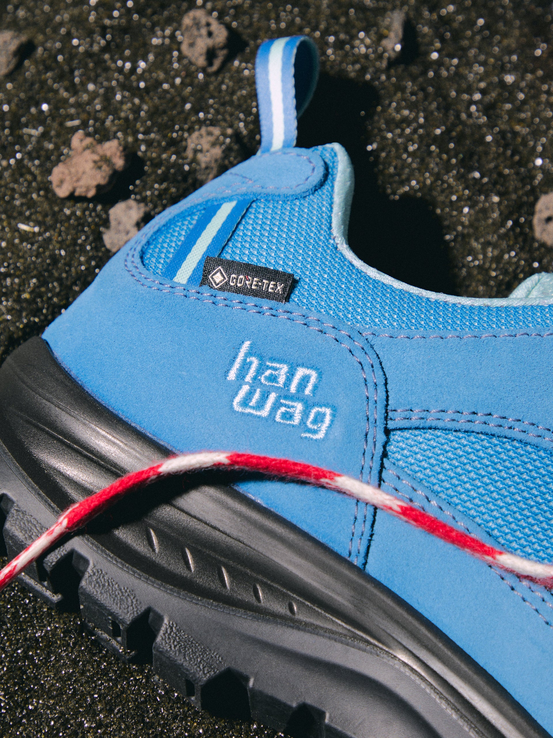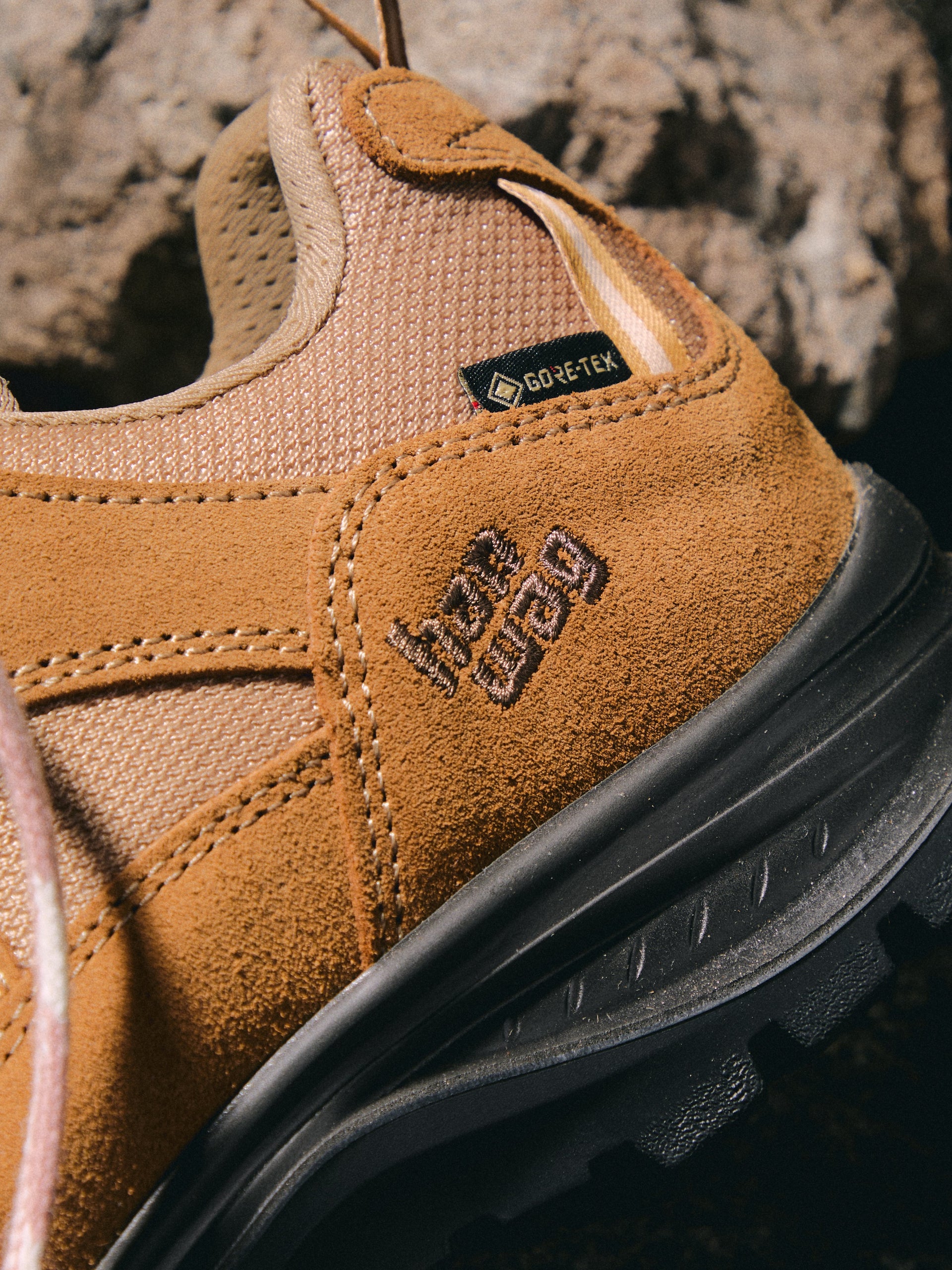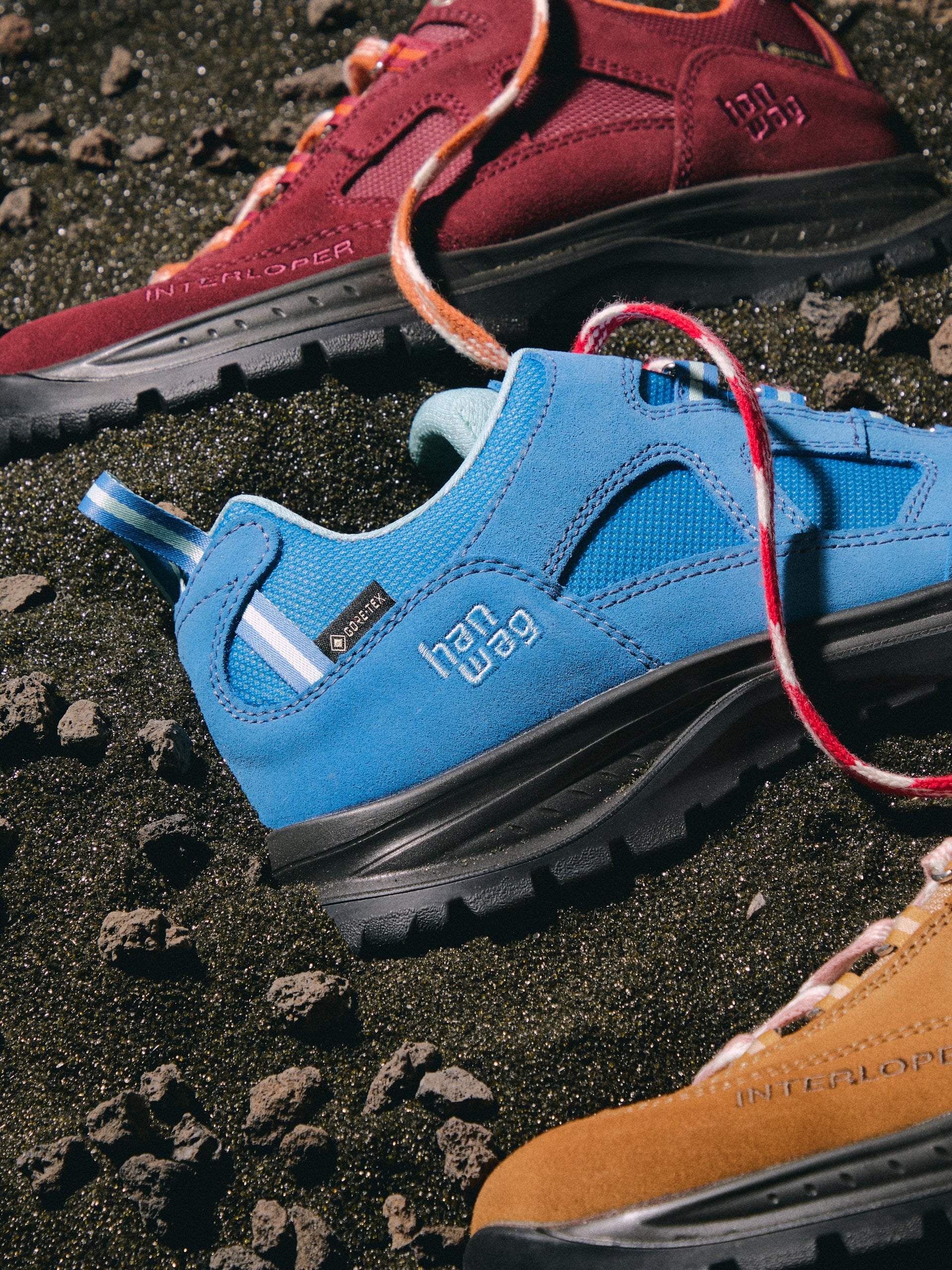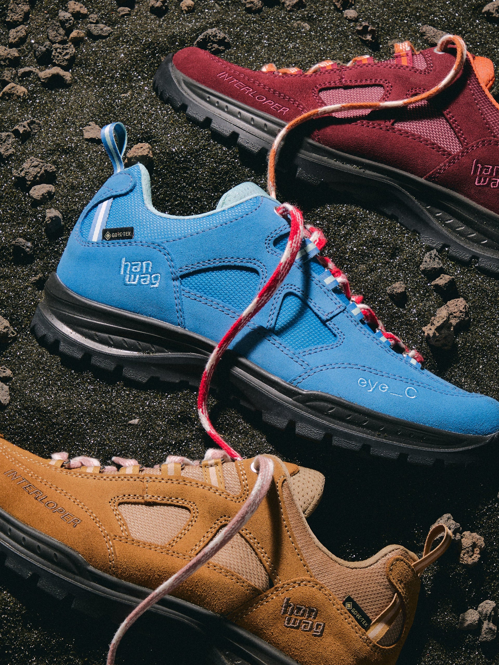The Gritstone is one of HANWAG’s heritage silhouettes, designed with a low profile upper for day hikes and long backpacking trips. The II GTX iterations feature durable and protective materials throughout journeys on varied terrain, a Gore-Tex membrane for moisture resistance, and Vibram® Ultragrip II Kronplatz outsole for traction on wet rocks or muddy trails. Designed in partnership with eye_C, the HANWAG Gritstone II eye_C GTX is designed in Camel, Mulberry, and Cyan Blue colorways, complete with eye_C branding at the toe, HANWAG branding at the lateral ankle, and contrast laces.