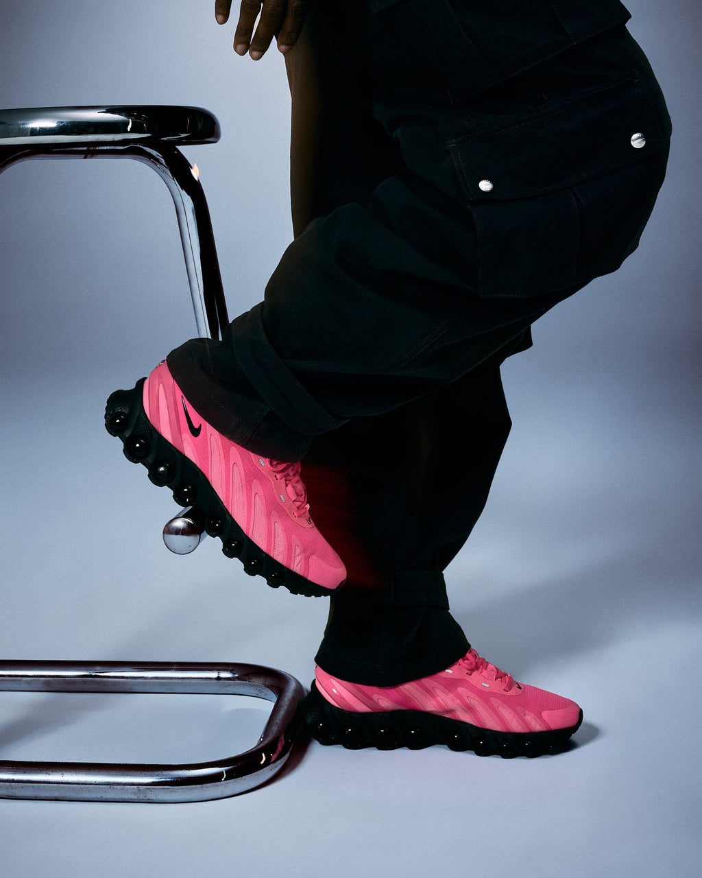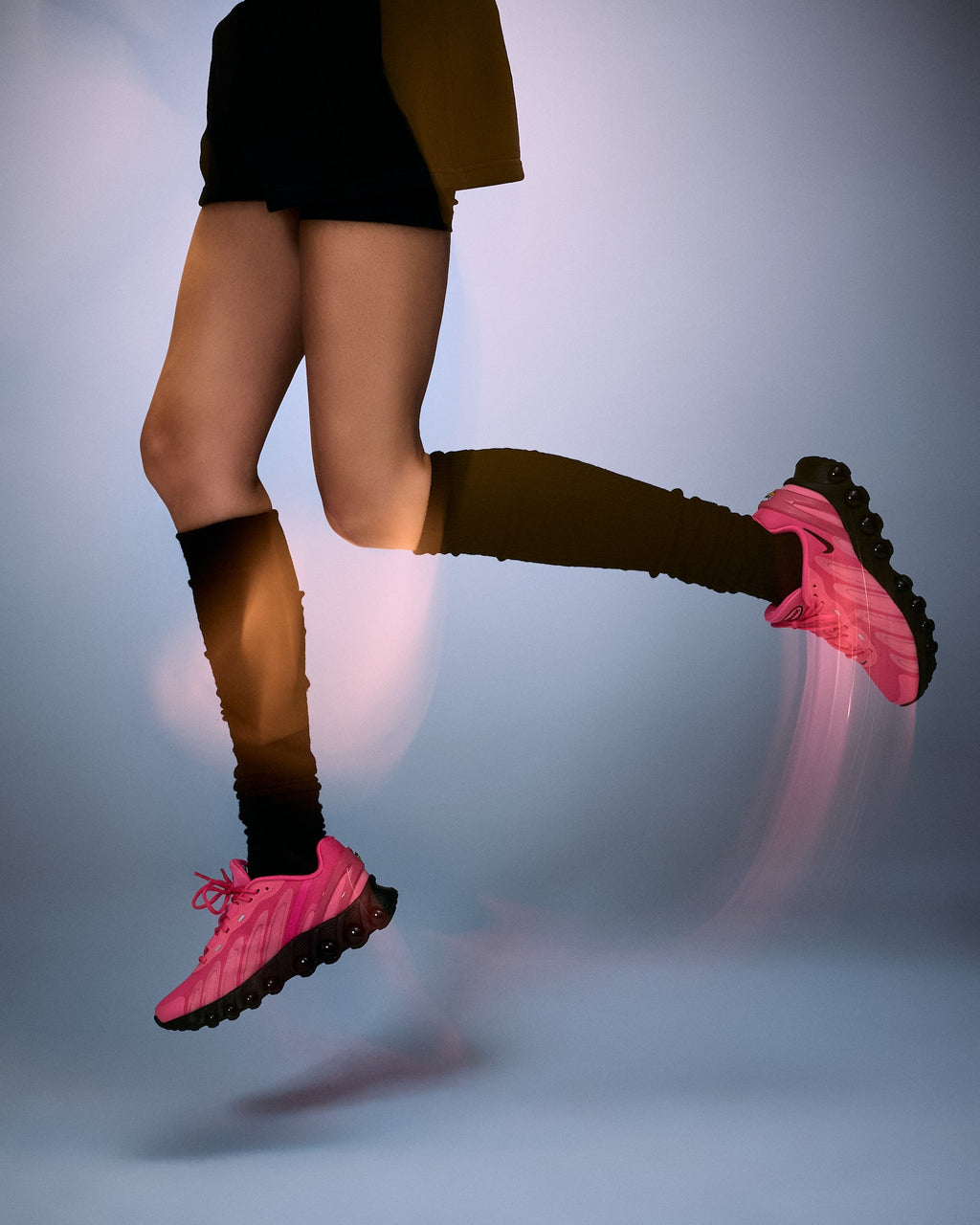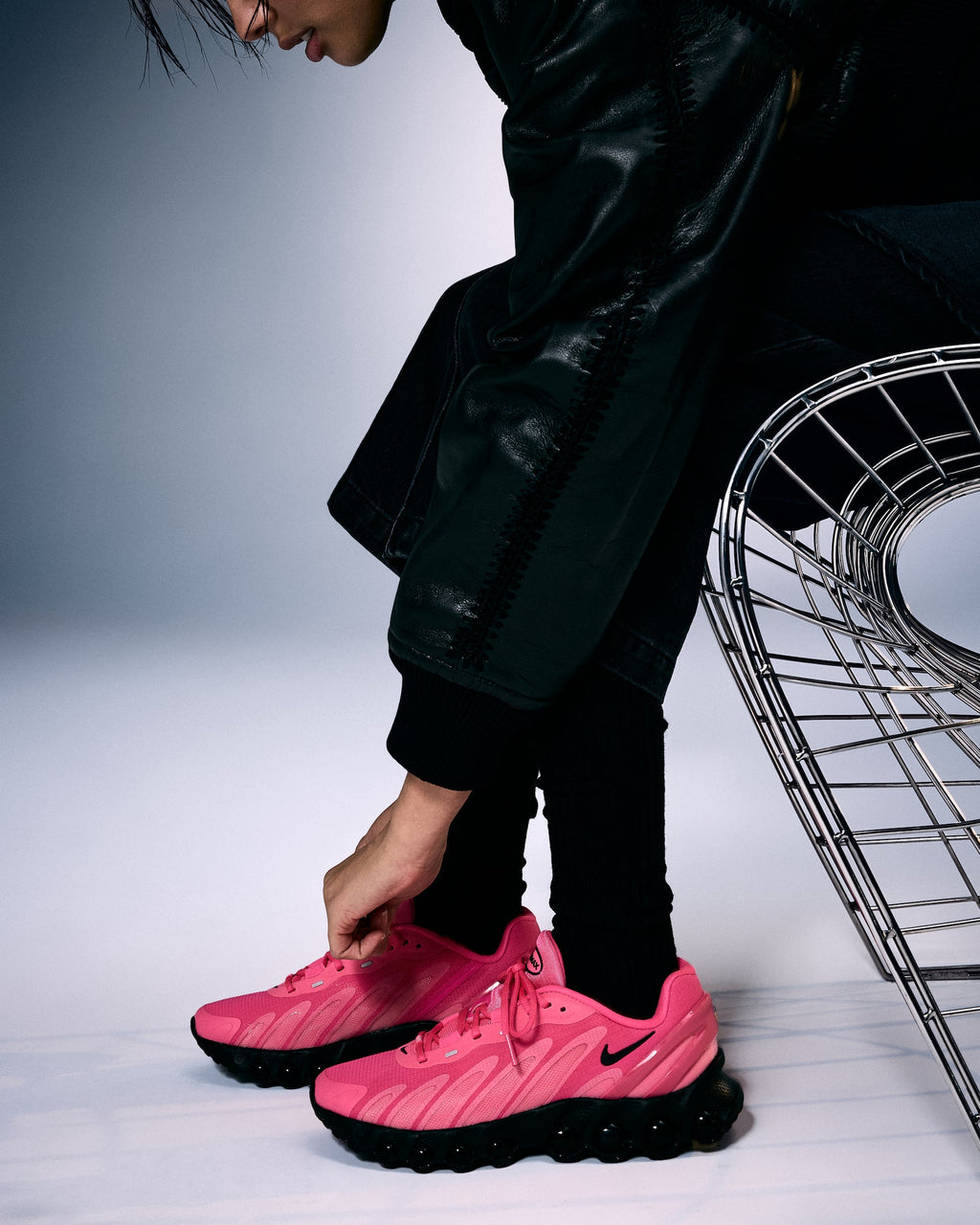 Built for athletic styling, the Air Max Dn8 has a sleek aesthetic that prioritizes lightweight, breathable materials. It’s an upgrade from Nike’s Air Max Dn—showcasing eight all-new pressurized Air tubes that provide a responsive sensation with every step. The model is seen in a bold “Hyper Pink” colorway.