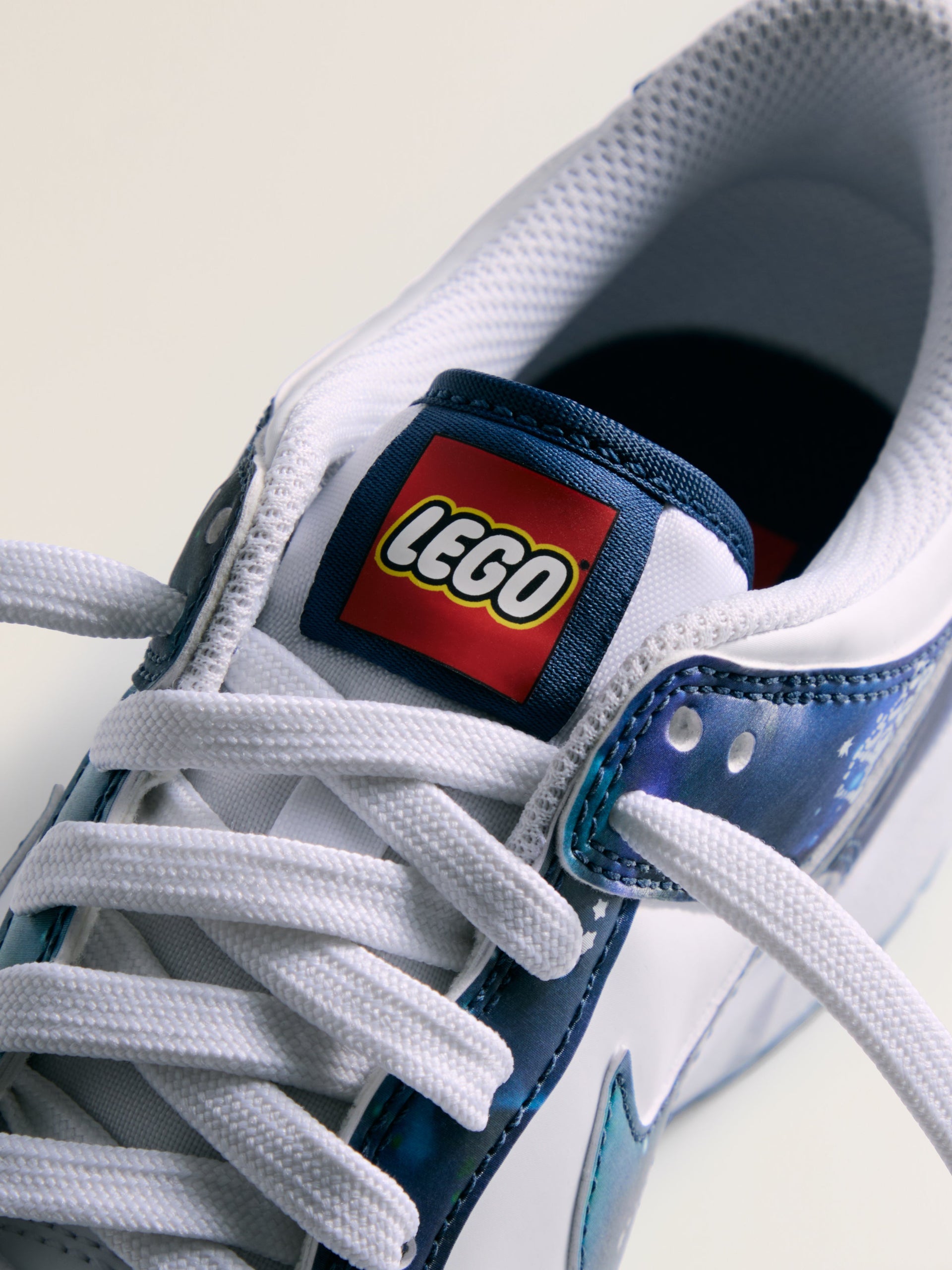As the third iteration of a three-part collaboration, this assortment from the Nike and LEGO Collection is designed in the Nike Cobalt Blaze and LEGO Dark Azur colorways, featuring galaxy-printed and metallic accents throughout. The footwear component to this release features the Dunk Low in “Brave Blue”, featuring a synthetic leather upper that gains vintage character with each wear, galaxy-printed overlays, and Nike x LEGO® branding throughout, available in both Pre-School and Grade School sizing. The apparel and accessory assortment features the Nike x LEGO Big Kids’ T-Shirt, made from premium cotton with iridescent artwork, the Big Kids’ Dri-FIT Jersey with Brick gradient sublimation, co-branded lettering, and HD silicone numbers, the matching Dri-FIT Crossover Shorts, along with the Oversized Pullover Hoodie and Cargo Pants, also complete with iridescent artwork. The last silhouette, a collaborative Hustle D 12 sneaker, features galaxy-printed mesh and synthetic overlays made up of LEGO constellations, releases later this month on November 15th.
