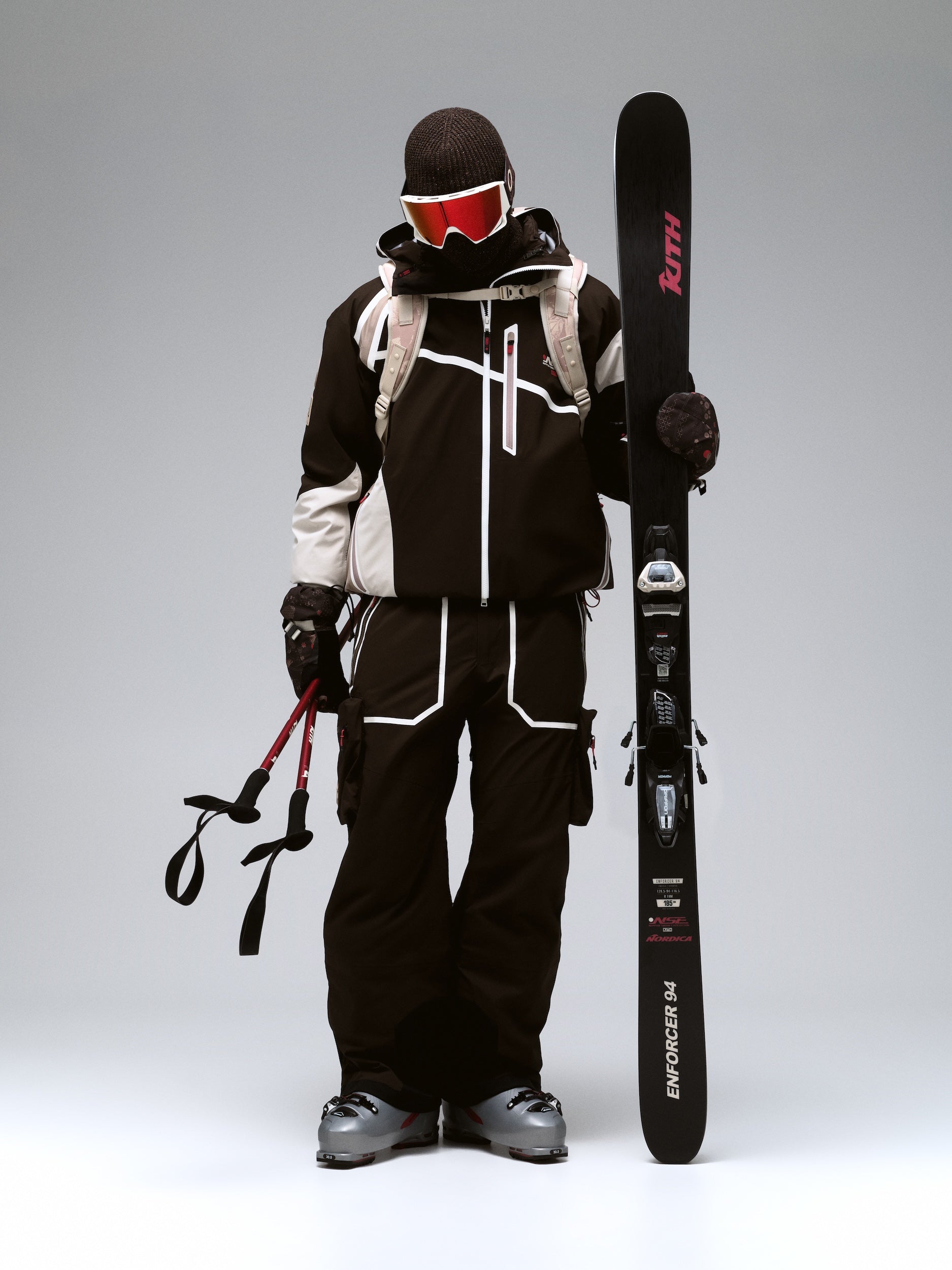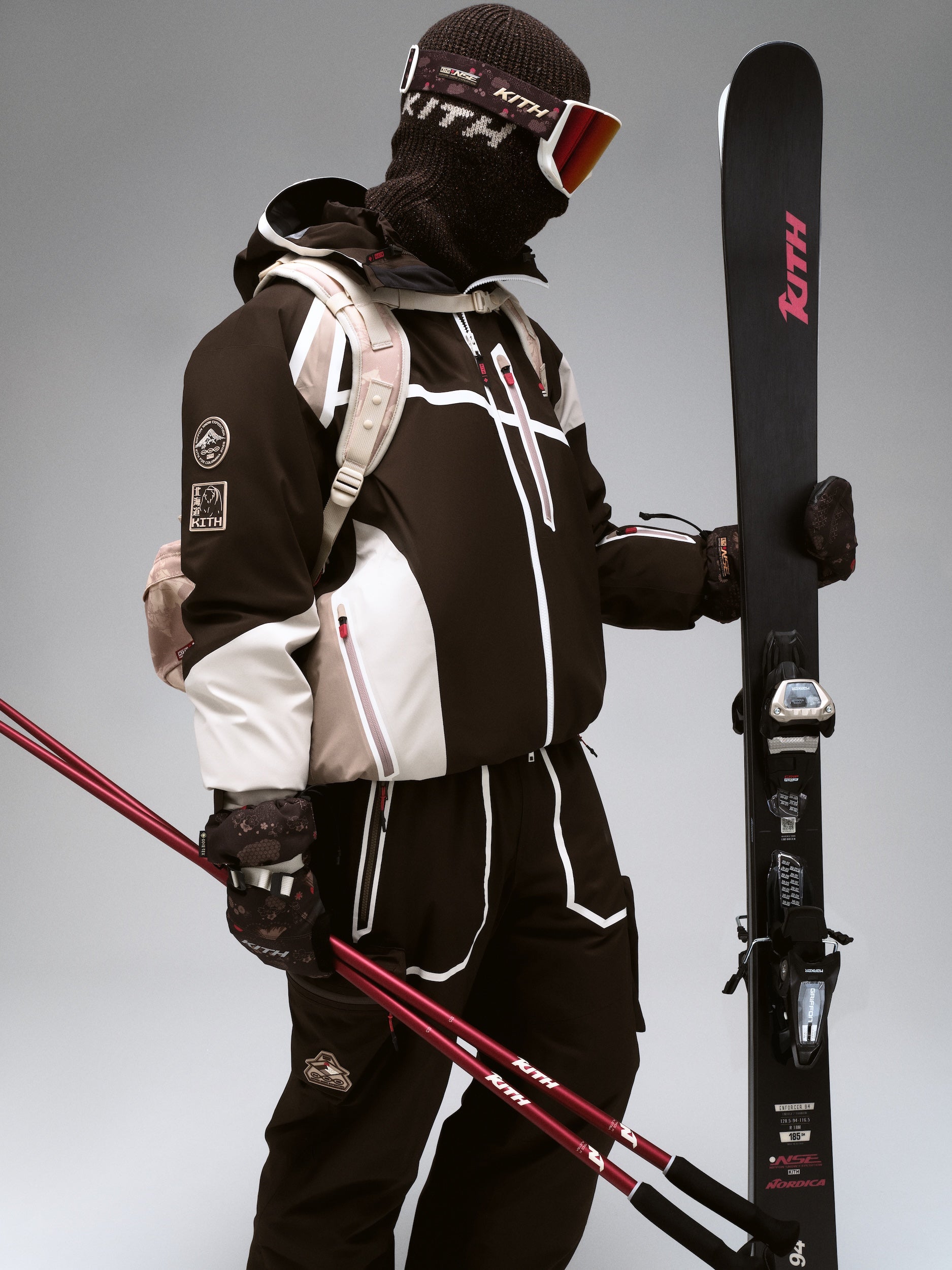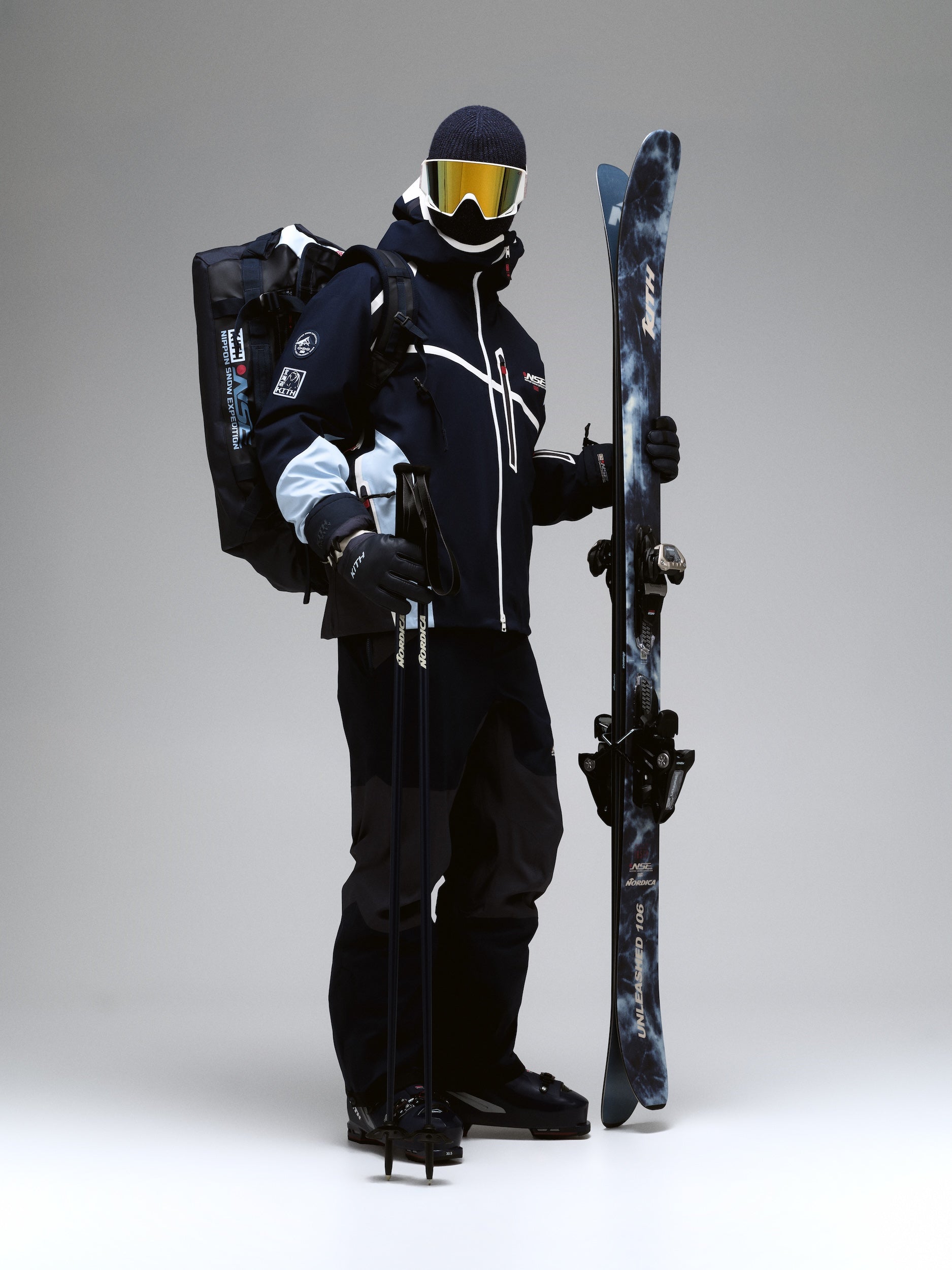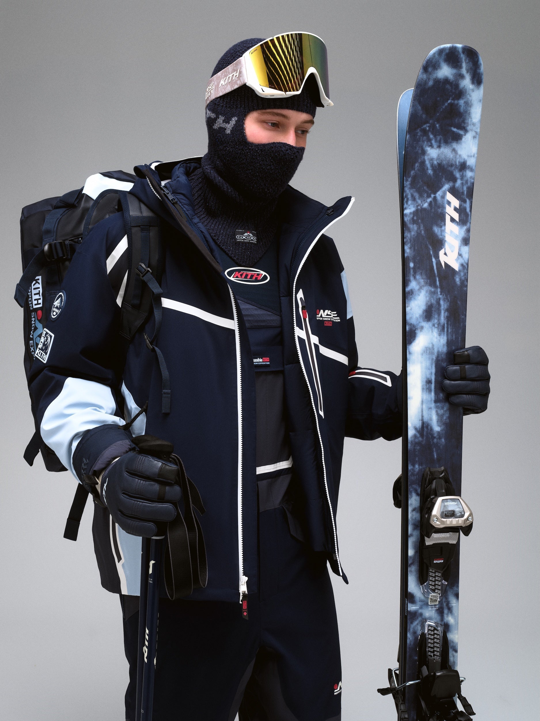 Alongside Columbia, Kith partnered with professional equipment manufacturers Capita, Nordica, and Union Binding Company to debut its first line of custom ski and snowboard gear, designed for optimal performance on the mountain. The Kith for Capita 158 Snowboards come in two all-over printed iterations featuring artwork drawn from the apparel assortment, completed by Nippon Snow Expedition branding. Skiers of all levels can upgrade their experience on the slopes with Kith for Nordica Enforcer 94 & Unleashed 106 Ski sets, both engineered to have All Mountain rockers ideal for confident versatility, whether it’s cross-country or alpine skiing. Explore Freeride Pro Ski Poles with an optimized grip, and two colorways of the Speedmachine 3 130S Ski Boot, also designed for All Mountain use, Kith’s first-ever Ski Boot silhouette. Designed in partnership with Union Binding Company, Kith presents two Strada Bindings—the #1 for park and freestyle snowboarding—made in two exclusive hues.