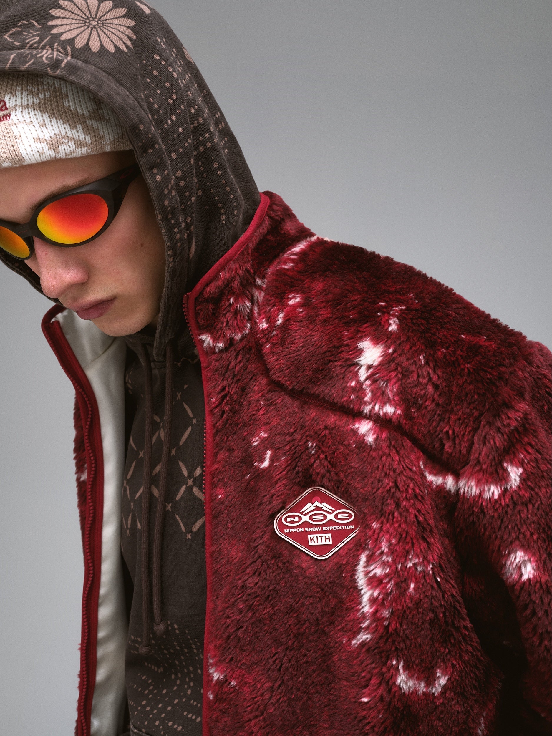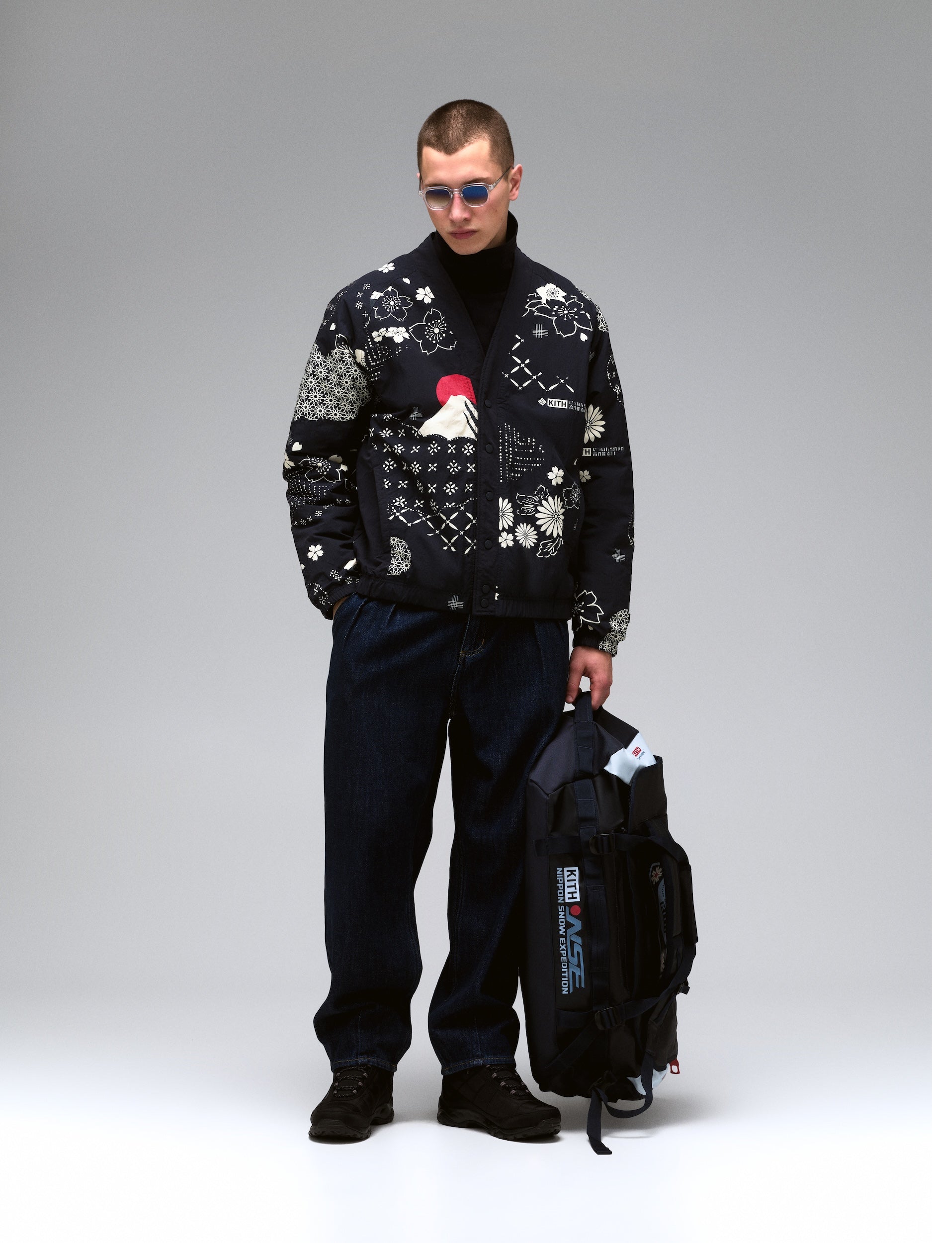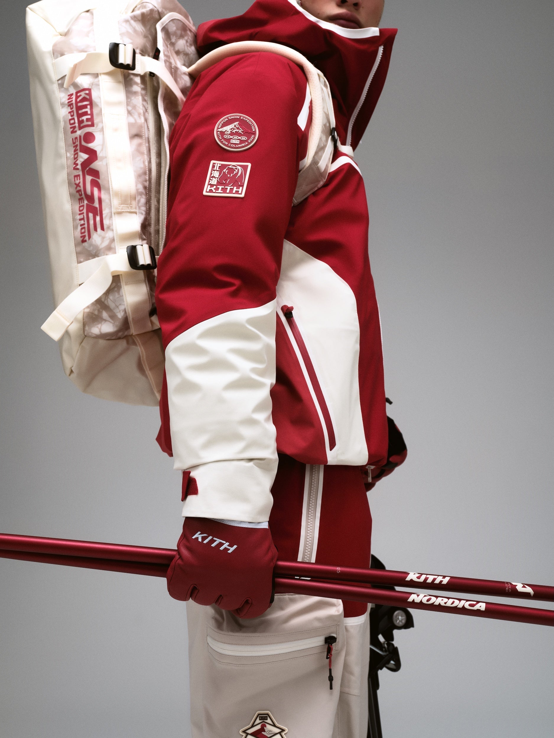 The apparel assortment from this collection blends Columbia’s meticulous approach to technicality with Kith’s design language, drawing inspiration from classic Japanese motifs and the natural scenes found in the Nippon mountains such as Hokkaido, and even more specifically, Mount Yōtei. The artwork throughout this collection includes nods to momiji foliage, and to the wildlife including the red-crowned crane and the brown bear, executed through intricate stitching and printing. Explore functional jackets like the 3L Ski Interchange™ Jacket which comes as a set of two layers—an Omni-Tech™ waterproof, breathable,  fully seam-sealed shell equipped with pockets for ski gloves, goggles, and a reversible liner with Thermarator™ insulation and novelty quilting. Intended to create a fully-fashioned ski uniform, this collection also includes a 2L Ski Pant and 2L Ski Bib featuring Omni-Tech Waterproof breathable fully seam sealed shell, Kith Monogrammed Omni-Heat™ Infinity lined material and many other mountain ready ski features. Classic Kith silhouettes also return for this collaboration, comprising all-over printed sportswear like the Sherpa Harper Jacket in Landscape and Ice Dye iterations, the Wyona Sweater in a technically-knit iteration, Nelson Hoodies, Vintage Tees, and additional loungewear complete with co-branded graphics.