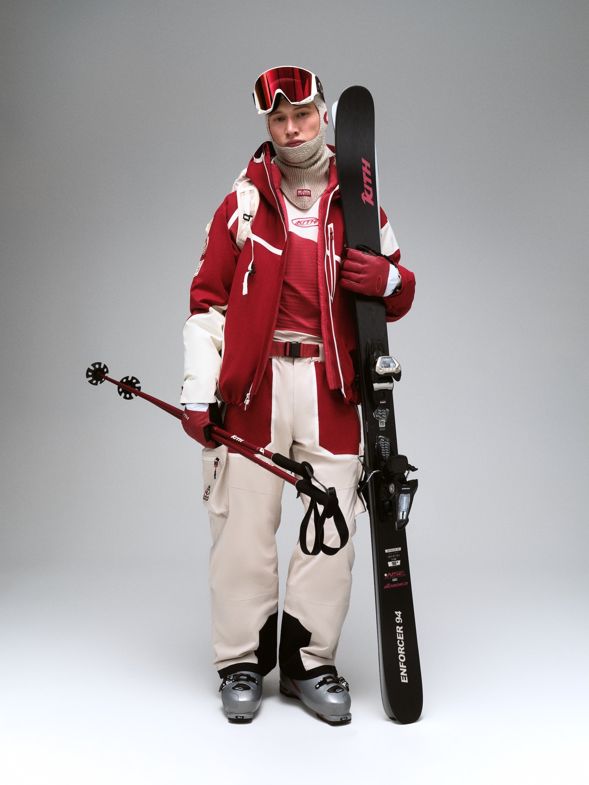 Lastly, Kith worked alongside longtime collaborator, Oakley, to debut a range of accessories for this occasion as well, including the fully adjustable MOD5 Helmet, Flow Scape Goggles, and sunglass silhouettes like the Cybr Dyno and Eye Jacket Redux, available in colorways exclusive to Kith for this collection. The Icon Backpack made in three exclusive colorways has a roomy main compartment for all day, everyday wear, media pockets, and secure closures. The Kith for Oakley assortment expands into Gauntlet Mittens and Gloves, Knit Balaclavas, Fleece Neck Gaiters, and merino-blended Patrol Socks, all made for warmth without sacrificing comfort.