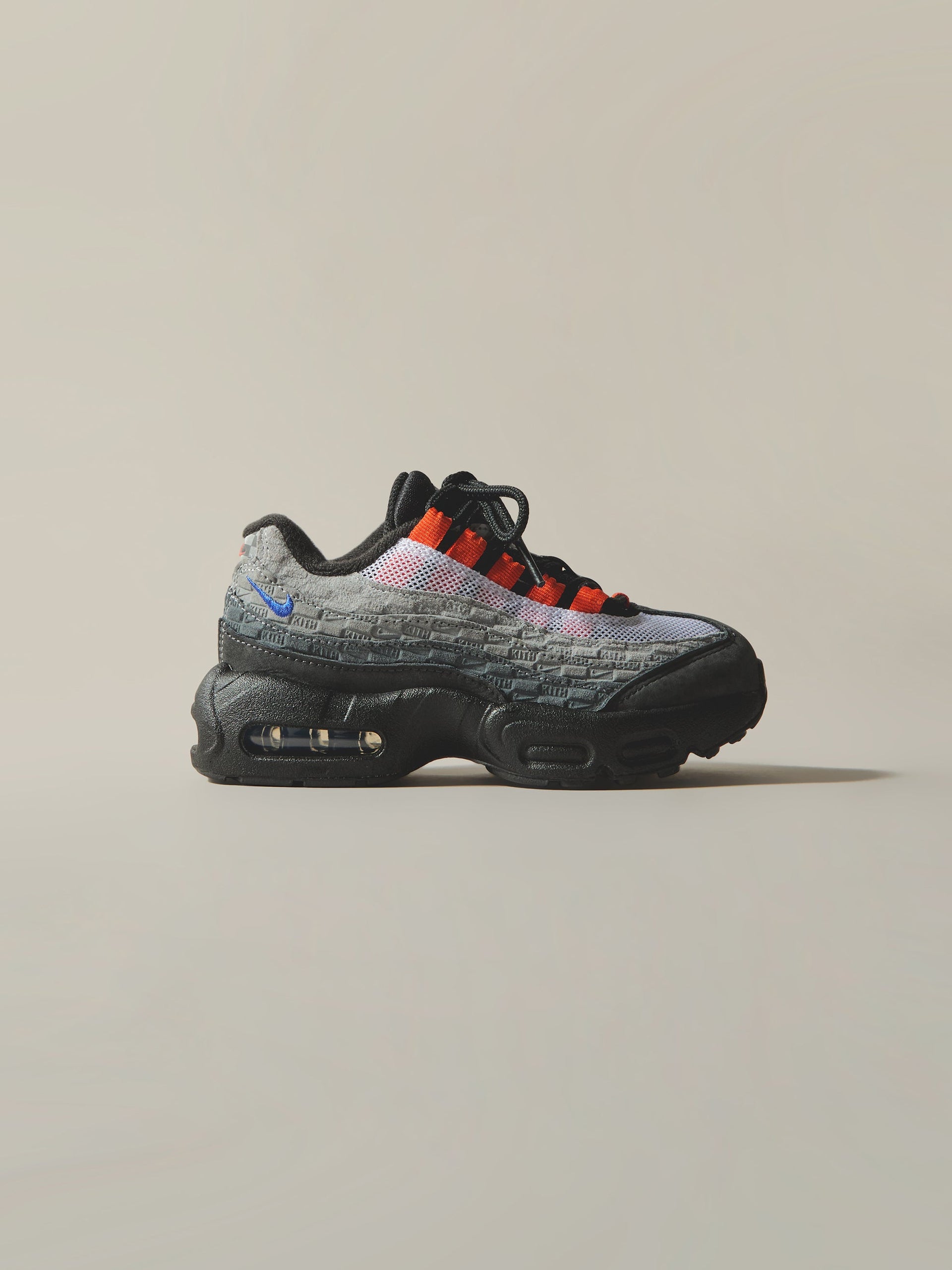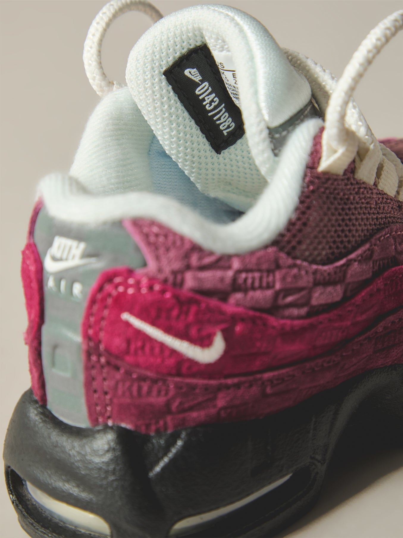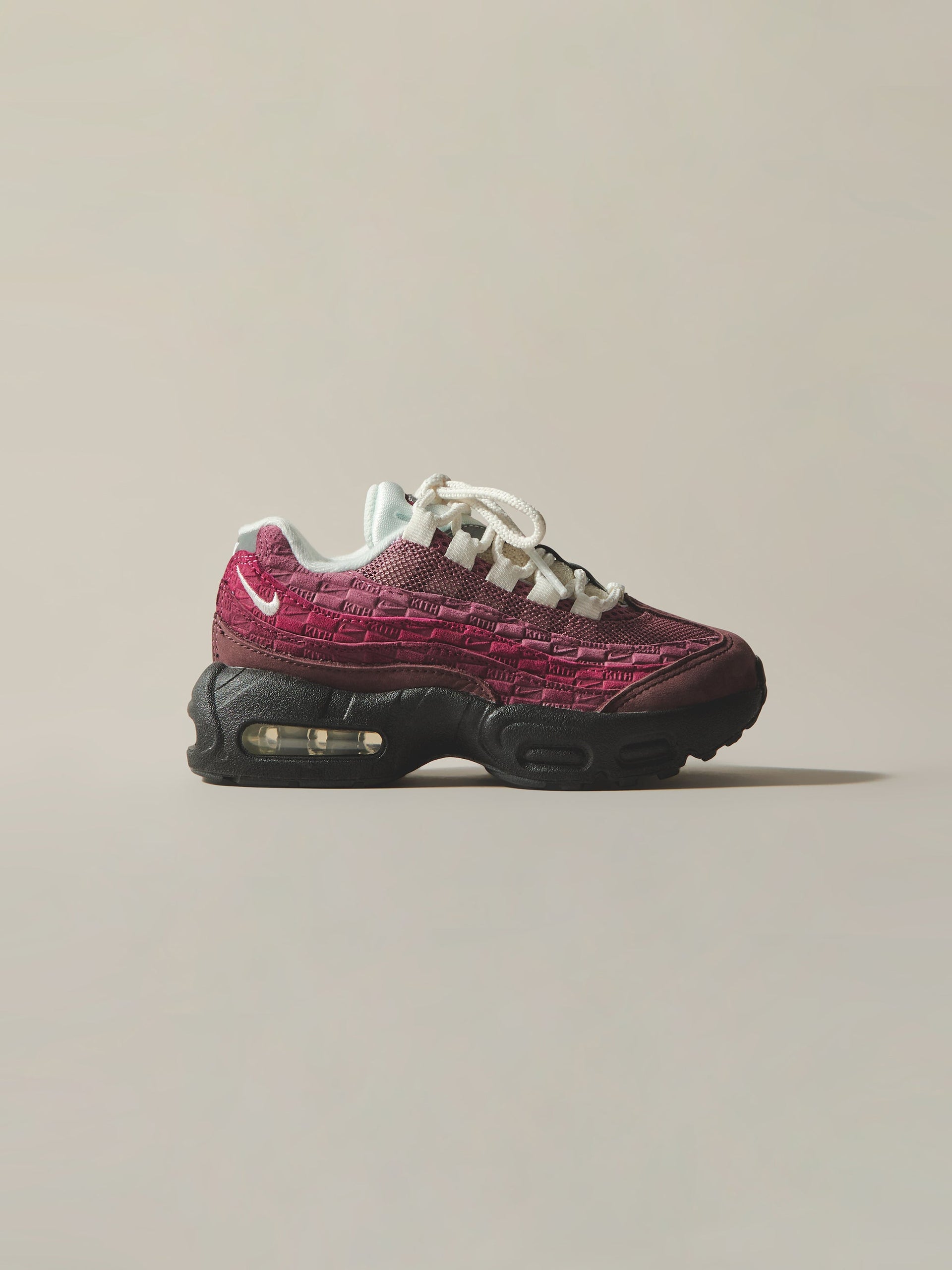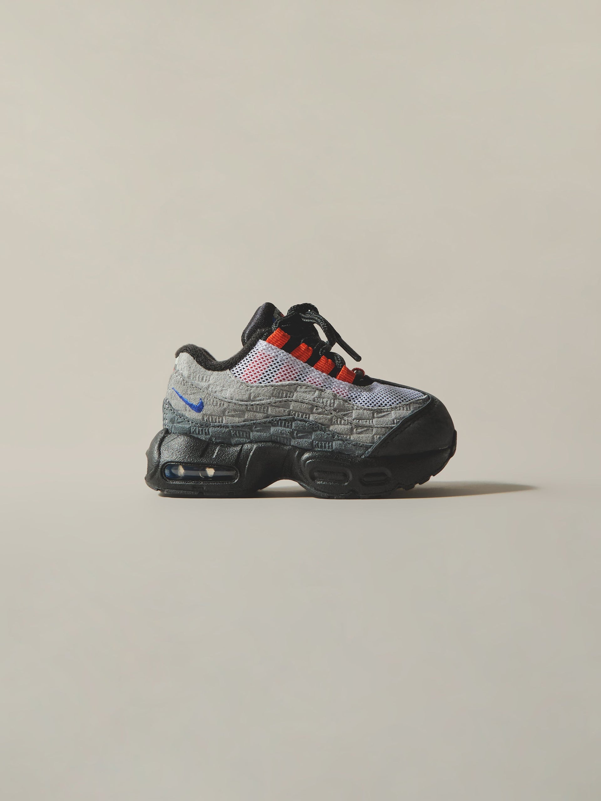 Kith Kids and Nike reimagine the Air Max 95 OG in two colorways, designed in all three size scales, comprising pigskin suede uppers in Anthracite & Grey, and El Dorado & Sail. This collaborative Air Max 95 features mesh underlays, Kith Monogram debossing on the lateral sides, Kith embossing at the medial, and Kith AIR embroidery on the heel with lenticular monogramming on the El Dorado hue, and reflective monogramming on Anthracite. It is complete with Air Bag Pillars at the midsole and black outsoles.