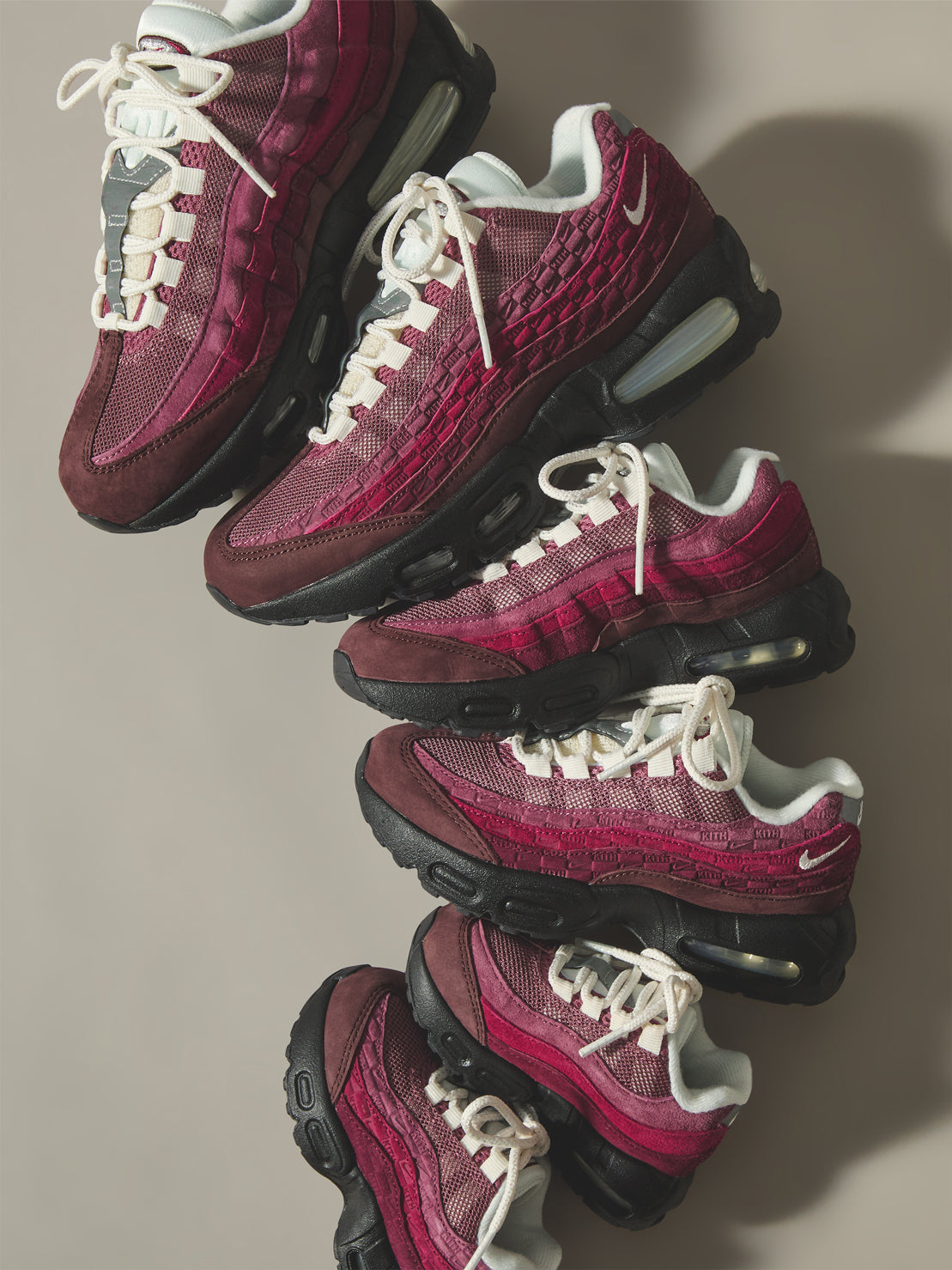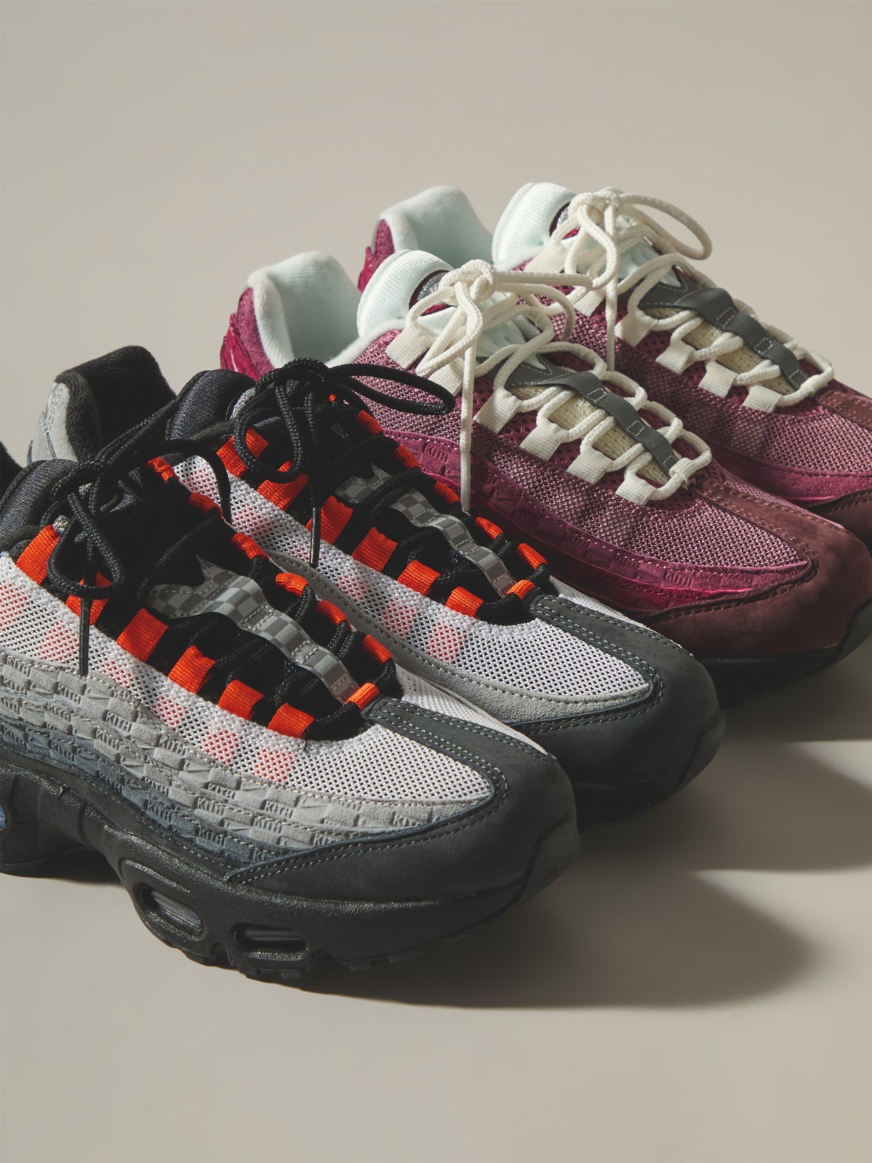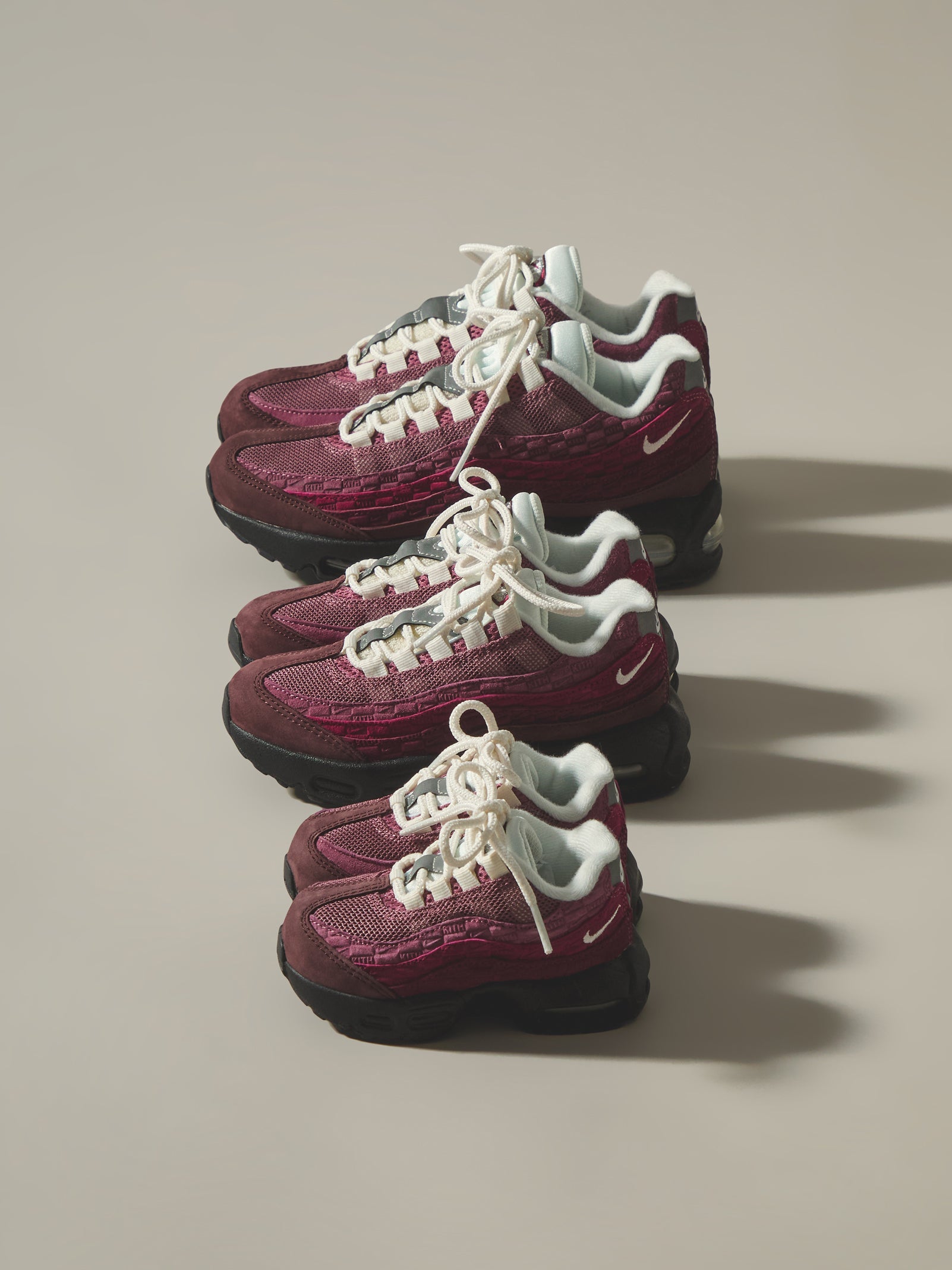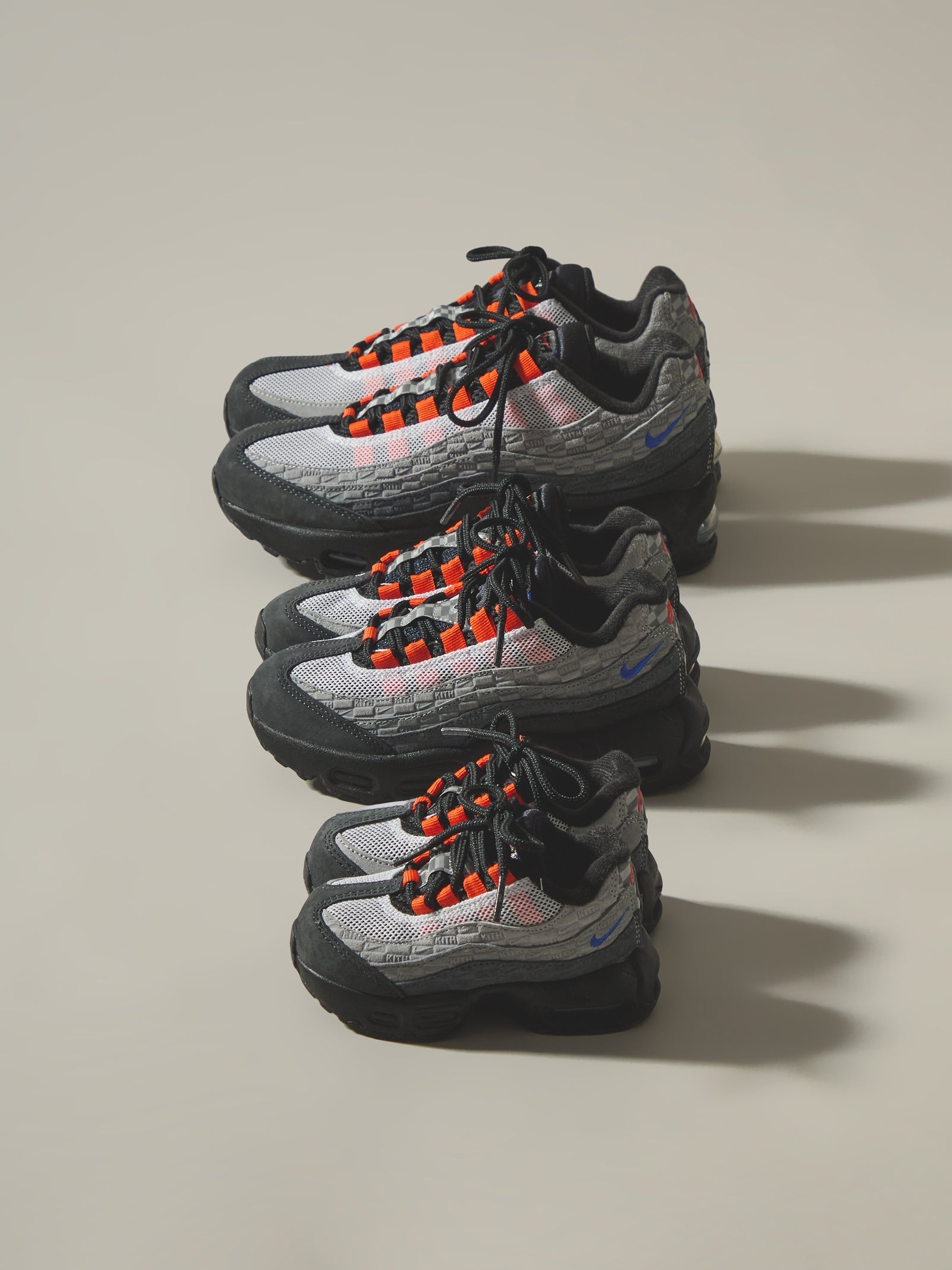Kith Kids and Nike reimagine the Air Max 95 OG in two colorways, designed in all three size scales, comprising pigskin suede uppers in Anthracite & Grey, and El Dorado & Sail. This collaborative Air Max 95 features mesh underlays, Kith Monogram debossing on the lateral sides, Kith embossing at the medial, and Kith AIR embroidery on the heel with lenticular monogramming on the El Dorado hue, and reflective monogramming on Anthracite. It is complete with Air Bag Pillars at the midsole and black outsoles.
