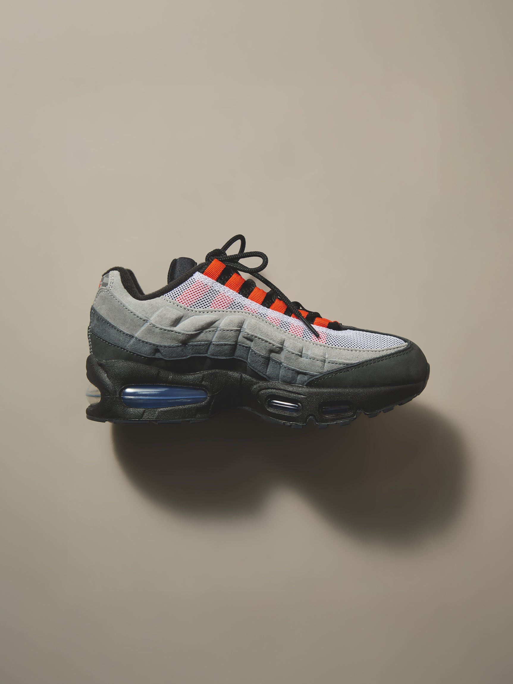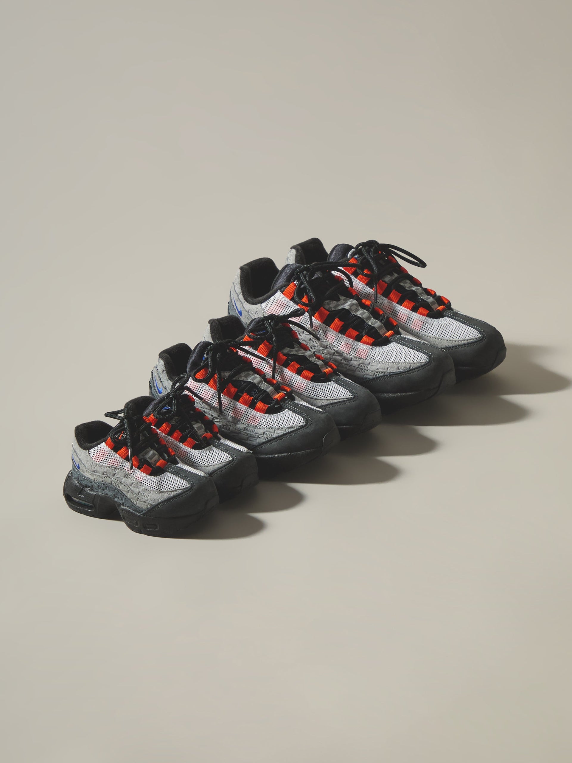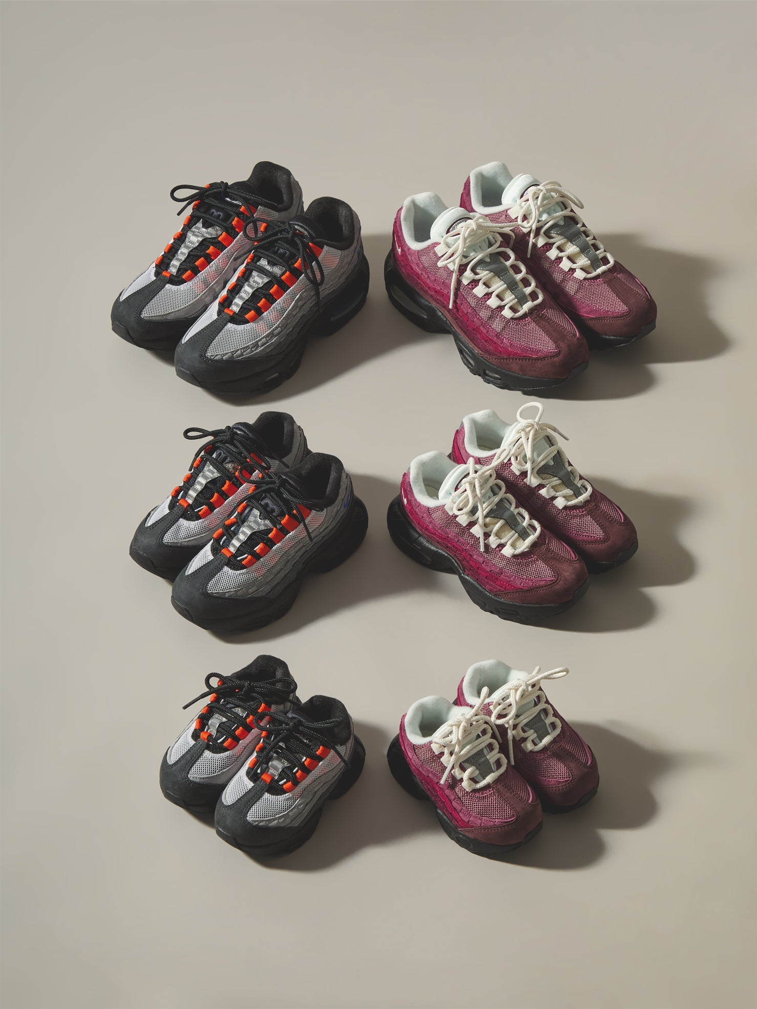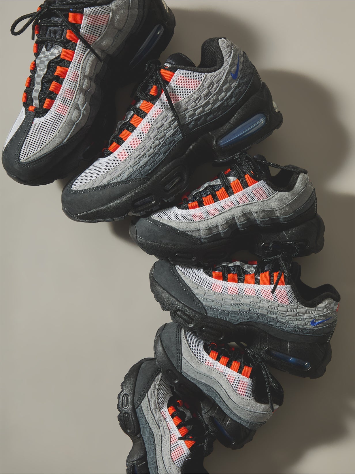 Kith Kids and Nike reimagine the Air Max 95 OG in two colorways, designed in all three size scales, comprising pigskin suede uppers in Anthracite & Grey, and El Dorado & Sail. This collaborative Air Max 95 features mesh underlays, Kith Monogram debossing on the lateral sides, Kith embossing at the medial, and Kith AIR embroidery on the heel with lenticular monogramming on the El Dorado hue, and reflective monogramming on Anthracite. It is complete with Air Bag Pillars at the midsole and black outsoles.