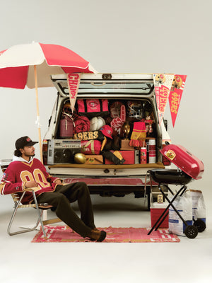 Kith for the NFL: Road to Victory is completed by headwear made in collaboration with ‘47, featuring styles like the Franchise LS and Trucker Hats made of seasonal fabrics like wool, microsuede, and corduroy. Shop cold-weather silhouettes like the Mia Beanie with embroidered artwork, the Hitch Trucker with all-over artwork, and applique patches.