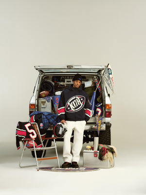 In partnership with the FOOTBALL GREATS ALLIANCE (FGA), managed by IMG Licensing, this collection features legendary players Mike Ditka, Jim Kelly, Jerry Rice, and Lawrence Taylor, with their namesake and artwork seen across Vintage Tees, Satin Bomber Jackets, and Sweaters. Additionally, more staple Kith silhouettes like the Nelson Sweatpant, the Nelson Rugby Sweater, and the Vintage Hoodie feature 90s-inspired motifs from each team, including custom appliqué patches, intricate embroidery, and printed graphics.