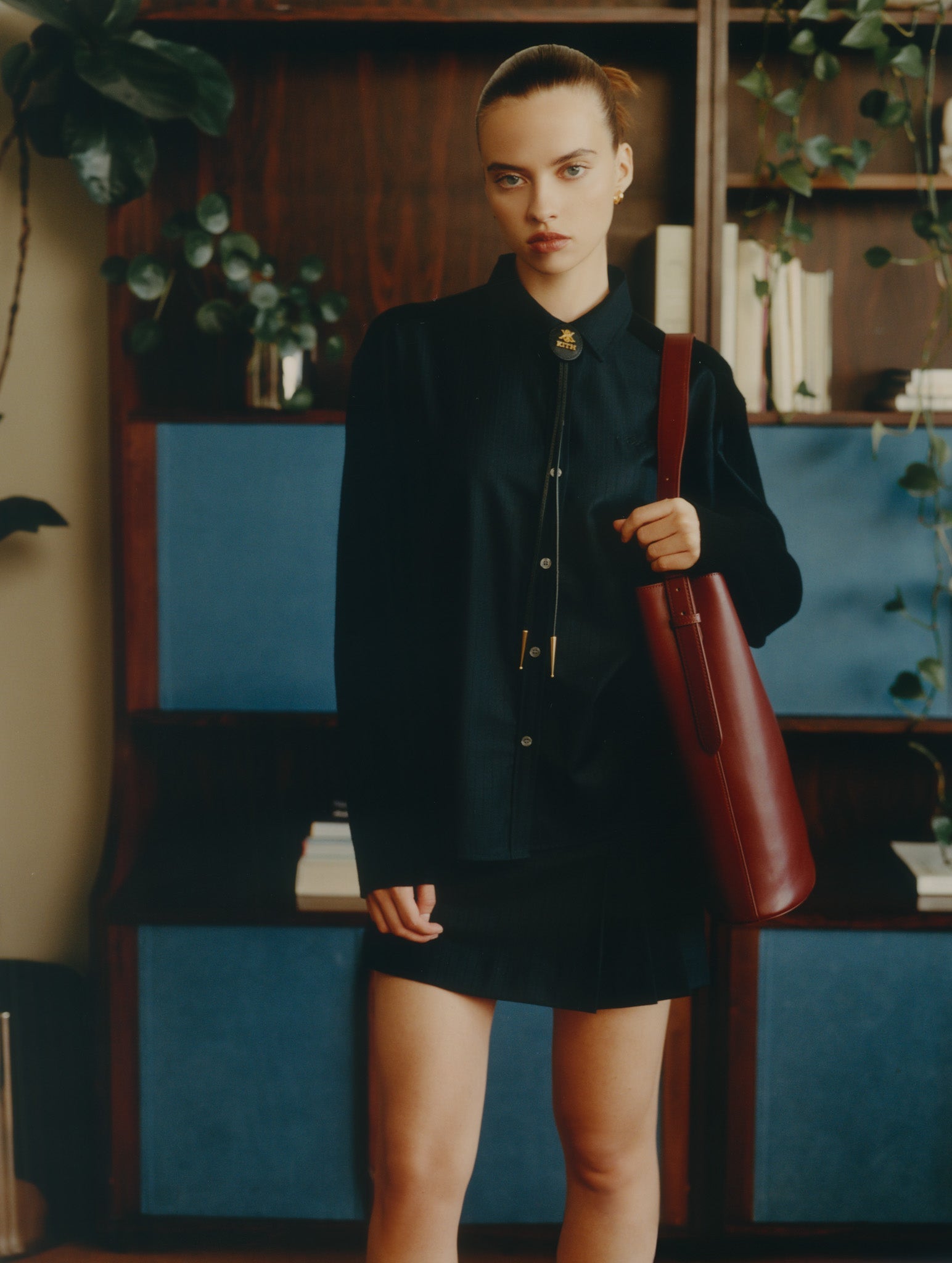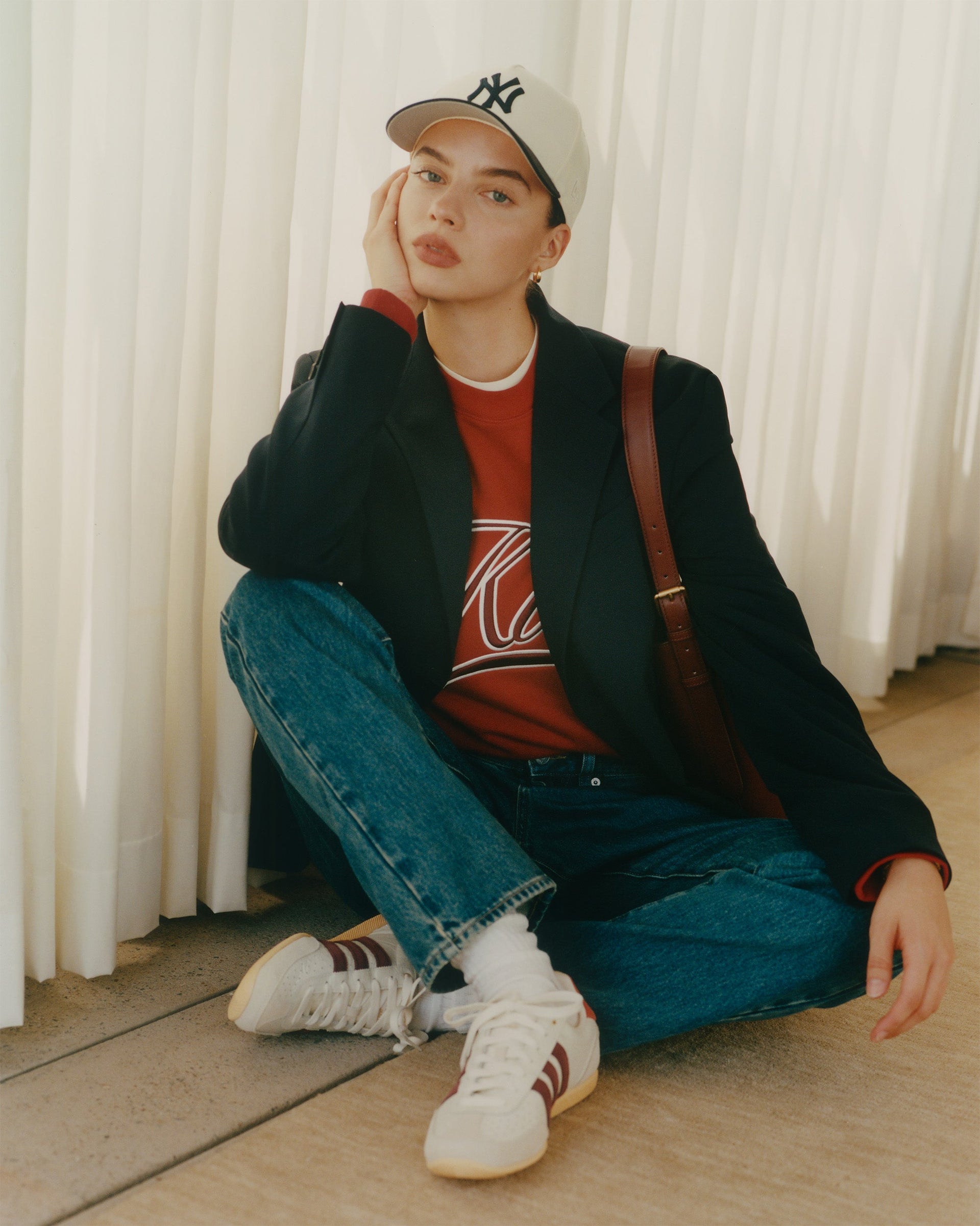Kith Women Fall 2025 is defined by versatile matching sets, transitional knitwear ideal for when the weather gets colder, and outerwear in a variety of silhouettes including coats, cropped jackets, and bombers. The collection features collegiate-inspired graphics, seen on the Campbell II Melton Varsity Bomber, the Ashwin Polo Sweater, and the Tanner NY Apple Hoodie, tailored separates designed for day-to-night dressing such as the Corwin Script Faille Jacket, the Eliah Boucle Tank, and the Riko Script Faille Mini Skirt, and Western-inspired silhouettes—the Palesa Moto Jacket, the Miren Paisley Pant, and assorted graphic tees. The primary materials used in this collection are a jacquard faille blend ideal for tailored silhouettes, transitional wool, and fine brushed interlock for a premium hand-feel.