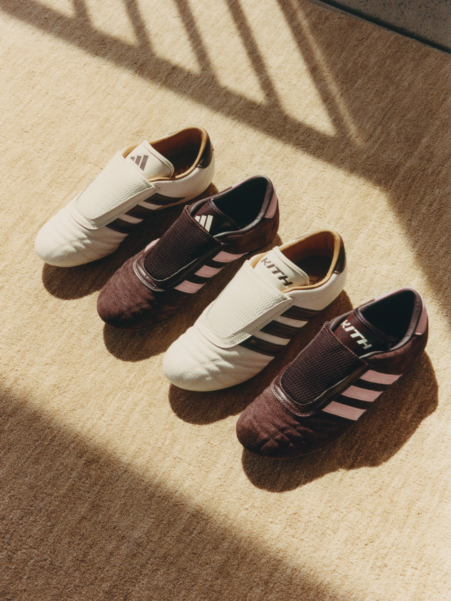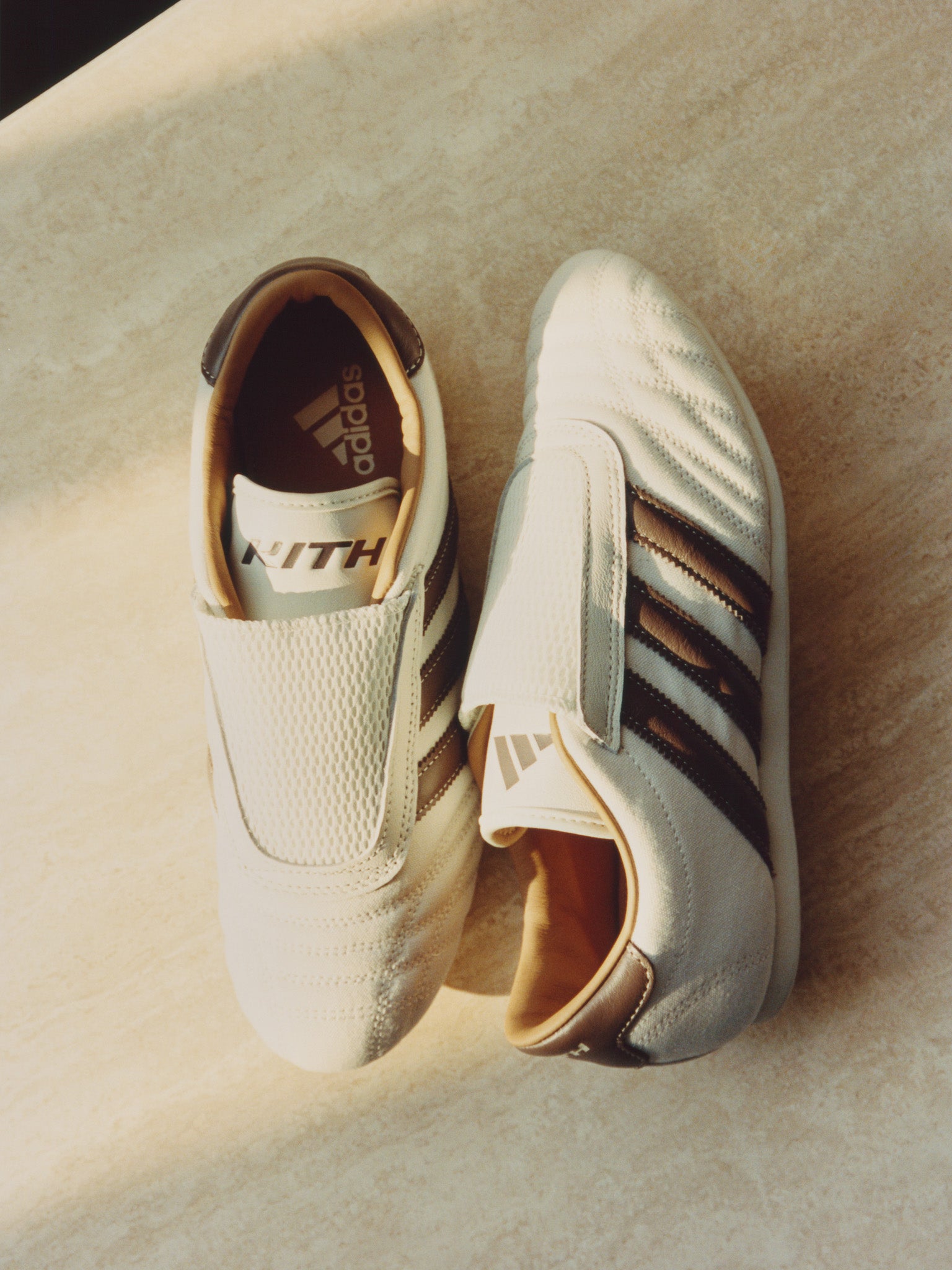 Kith and adidas Originals first collaborated on the Taekwondo with Kith Women Spring Lounge 2025, debuting the Taekwondo Mei in the Kith Classics Evergreen hue. The Kith Women for adidas Originals Taekwondo from Fall 2025 is featured in the colorways Natural Canvas & Coffee Quartz, made of durable canvas, and Shale & Corsage, made of premium suede. Both styles have alternating Kith and adidas branding on the left and right feet, complete with a breathable mesh tongue, and Tri-Stripe overlays made of nubuck on Shale & Corsage, and leather on Natural Canvas & Coffee Quartz.
