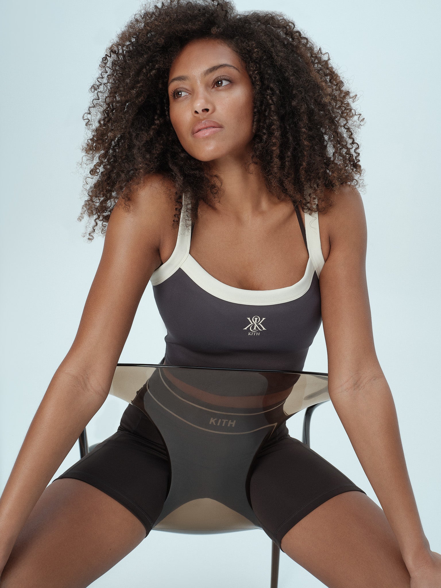 Blending harmoniously form and function, materials from this collection offer a sleek, flattering finish in an array of compression options, including both simple lifestyle fabrications and high-impact holds. Explore signature Kith wrinkle nylon utilized on Track Jackets, fine-brushed and peached interlock suitable for workouts of all intensities as well as lifestyle wear, implemented on Sports Bras, Leggings, Biker Shorts, and Rompers, and a soft, compact technical knit displayed on the Ari Active Skort and Active Peyton II Tank.