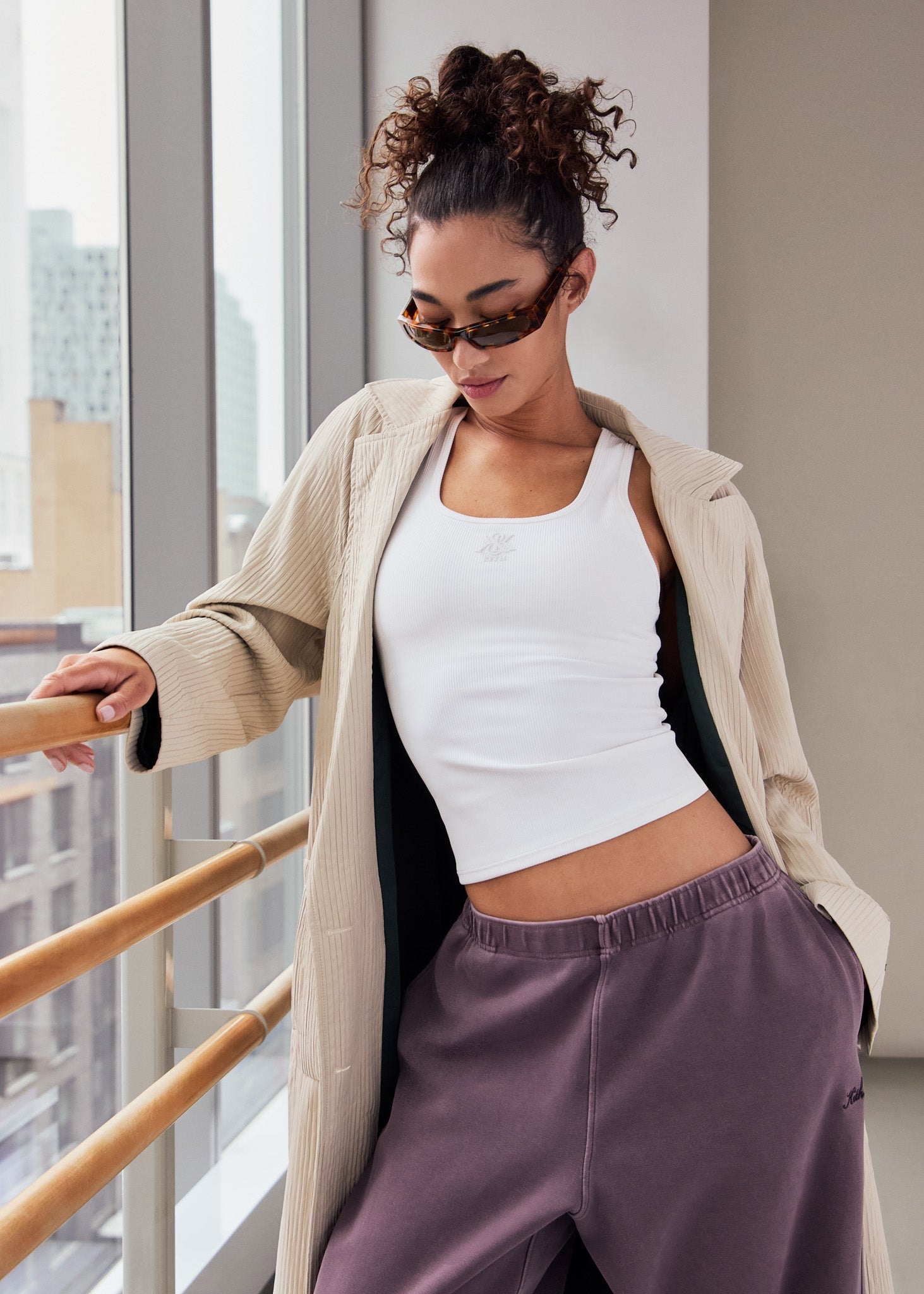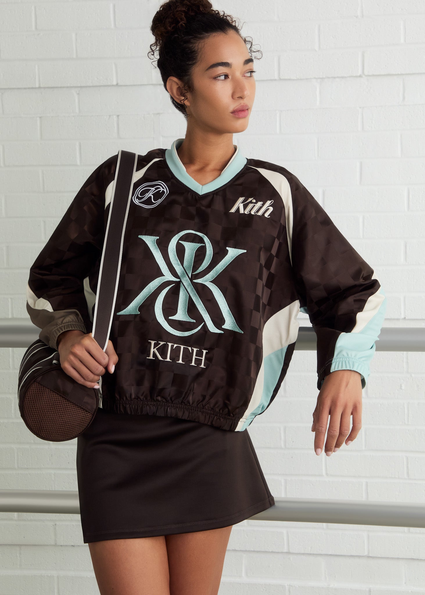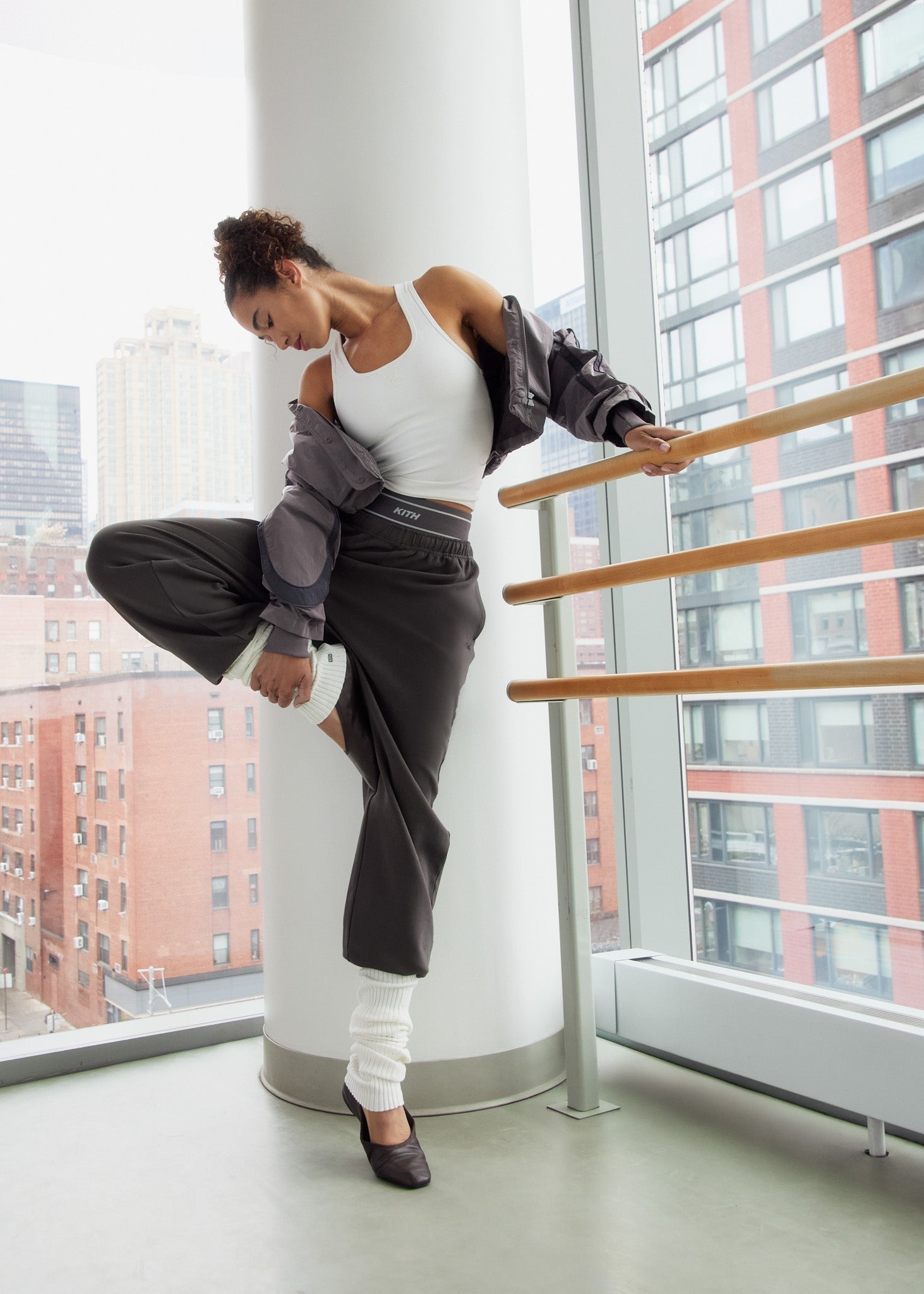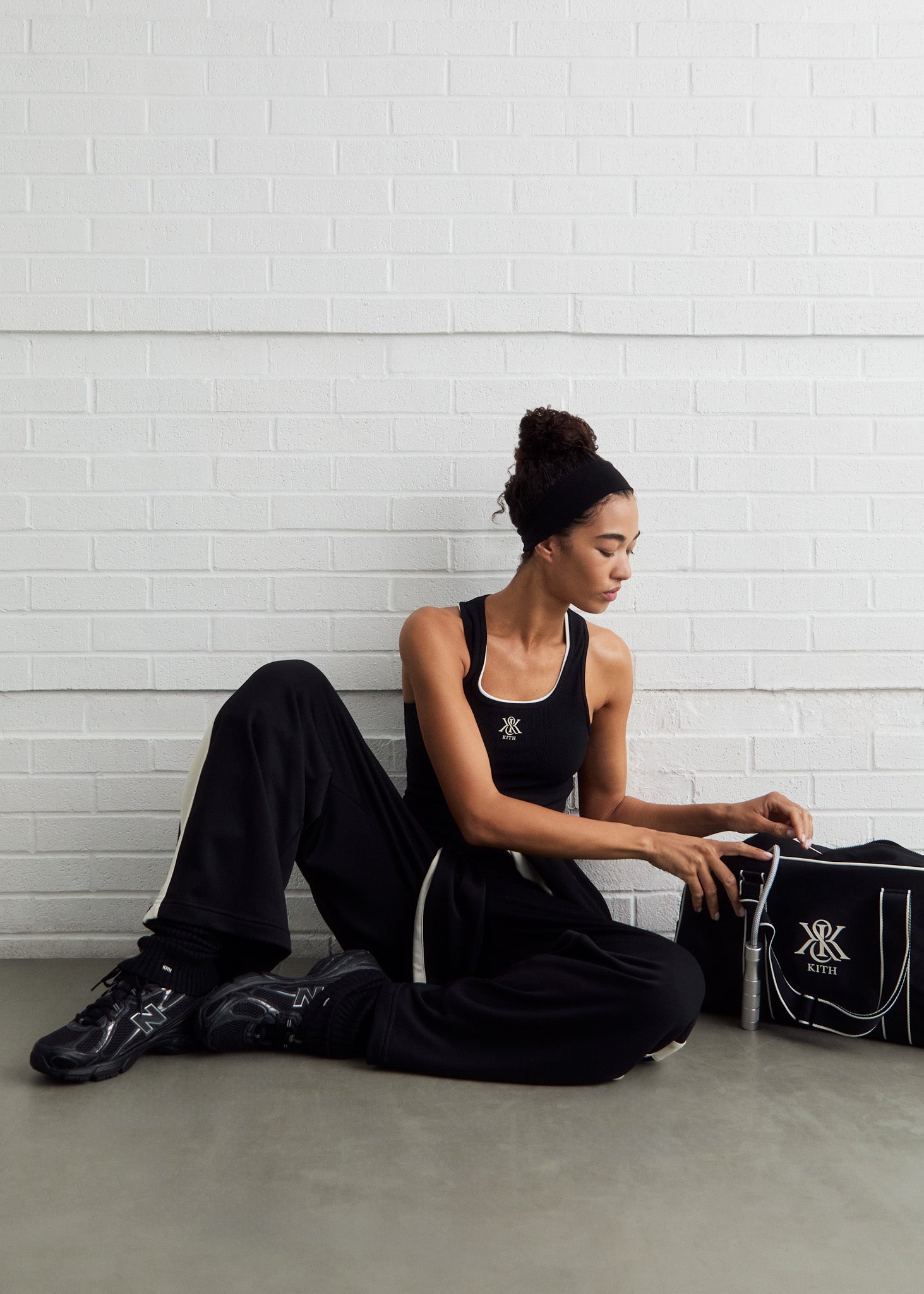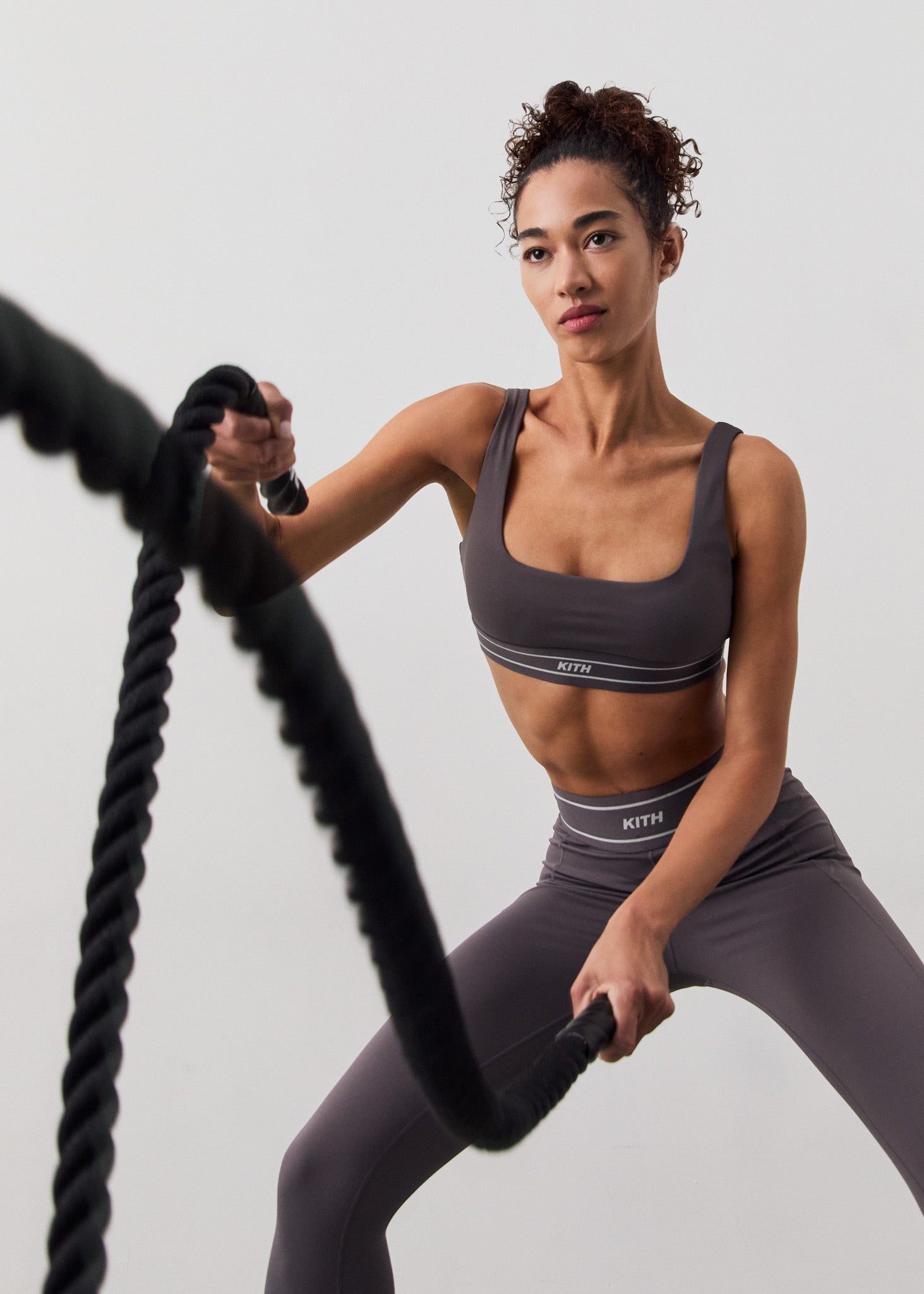 Designed for working out and all-day activities, this collection offers form-fitting, supportive styles made for performance. Explore debut standouts like the Alida Active Zip Top, the Azariah Seamed Track Jacket, and the Remi II Active Romper—made from fine brushed interlock and lightweight wrinkle nylon. Returning for the season in a compact rib blend is the Active Peyton II Tank, now featuring a built-in shelf bra with removable cups. Scallop detailing elevates form-fitting silhouettes like the Corsi Corset Active Top, Nadia Halter Tank and Kaine Layered Bra Top. Most styles in the collection are designed to be effortlessly paired with coordinating tights, pants, shorts, and skorts that also feature the same hues, materials and Kith branding.