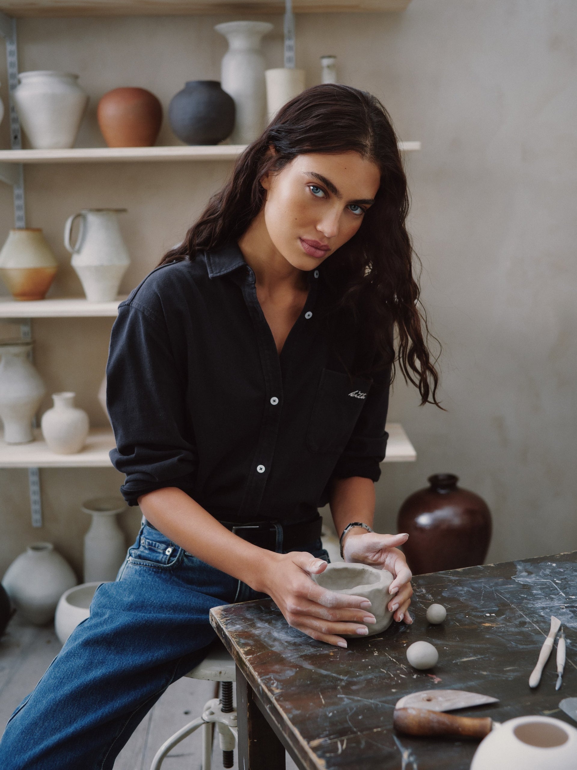 The accessories assortment from this season follows suit with the Kith Women Spring 2026 Palette, including pops of Lake blue, deep brown Ganache, and core Black. Handbags made of Kith Monogram suede and leather return in the Harlowe and introduce the Imana Crescent Shoulder Bag, complete with an adjustable shoulder strap and interior pocket. Additionally, Kith hat silhouettes and headwear designed with ‘47, alongside premium cotton crew socks with subtle embroidery compliment the offering.