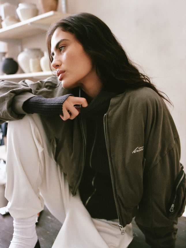 Introducing ready-to-wear Suede Moto Bomber Jackets, the Kith Women Spring Classics collection features a range of styles ideal for versatility and day-to-night dressing, a core pillar of the Kith Women brand. Explore additional Bomber Jackets made of sueded cotton for a vintage-wash effect, technical layers with reflective artwork and asymmetrical detailing, alongside some of her staple favorites such as the Mulberry II Tee, the Ina Sweater Track Zip, and the Ora Shirt, now available in updated hues and materials.