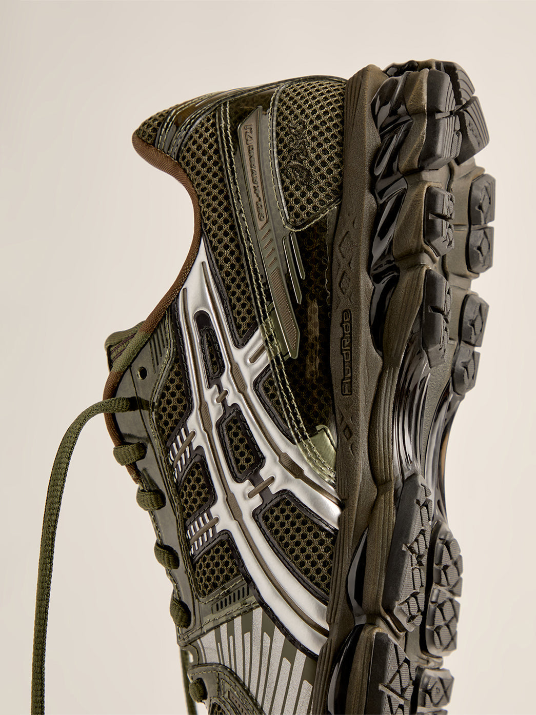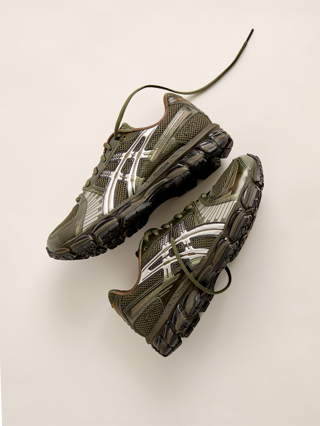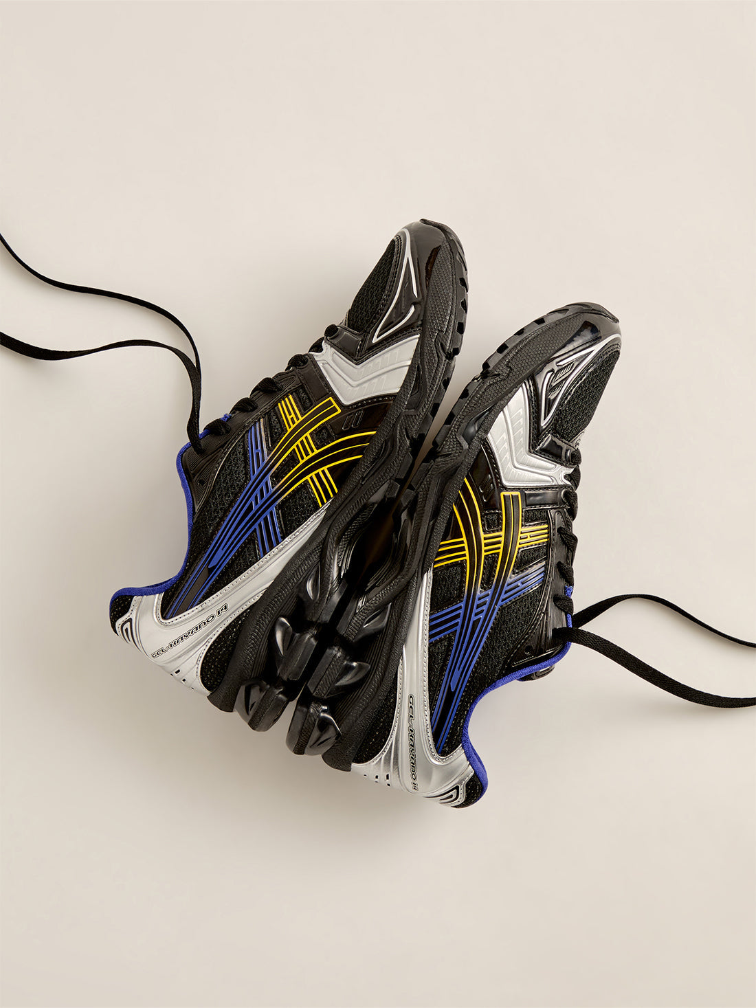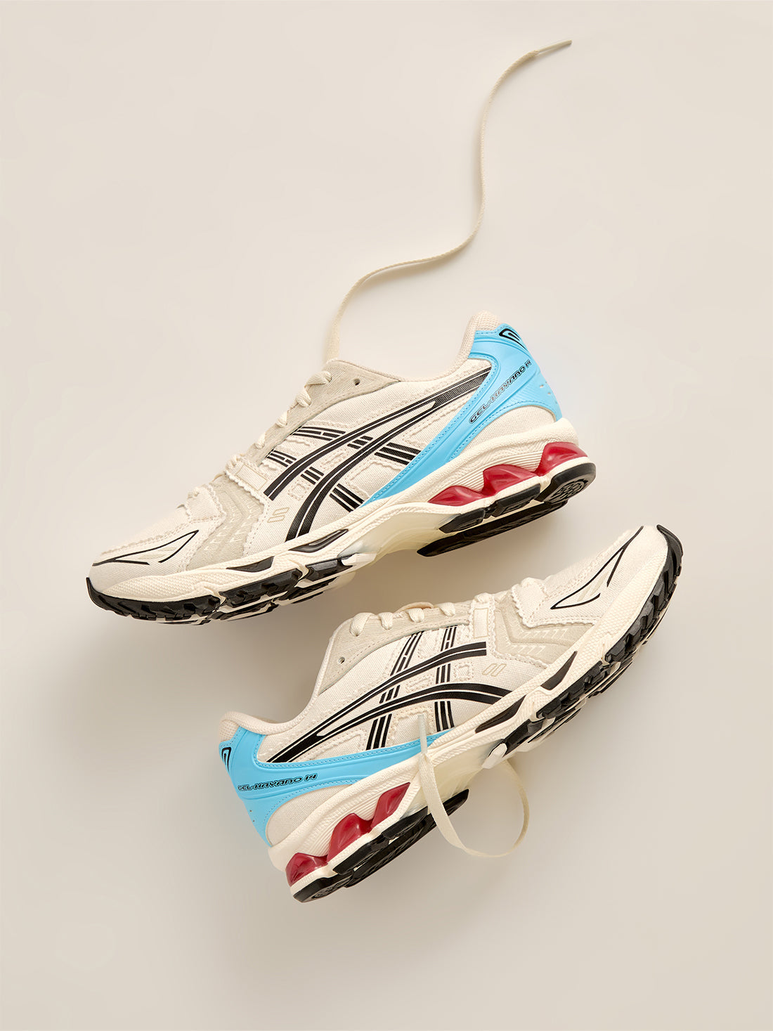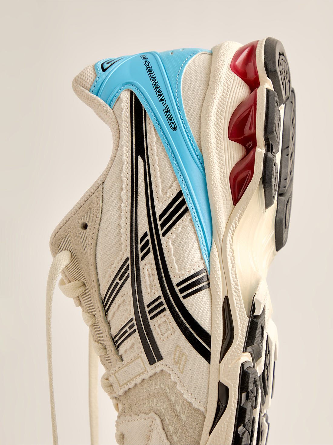 Lastly, the offering is completed by two GEL-KAYANO® 14’s in a Black and iridescent colorway inspired by Marvel’s Wolverine, and a Coconut Milk and Black colorway inspired by Capcom’s Ryu. The Wolverine silhouette features oval mesh underlays and synthetic iridescent leather overlays, complete with Fieg branding on one heel, GEL branding on the other, and co-branding on the tongue with contrast yellow Tiger Stripes. Ryu’s iteration features a Coconut Milk and Black colorway inspired by Capcom and is made with distressed frayed canvas on the upper, nubuck detailing, a synthetic heel cage, and the same branding locations as Wolverine. Both have GEL-KAYANO™ 14 features like GEL™ technology at the underfoot, durability, and cushioning.