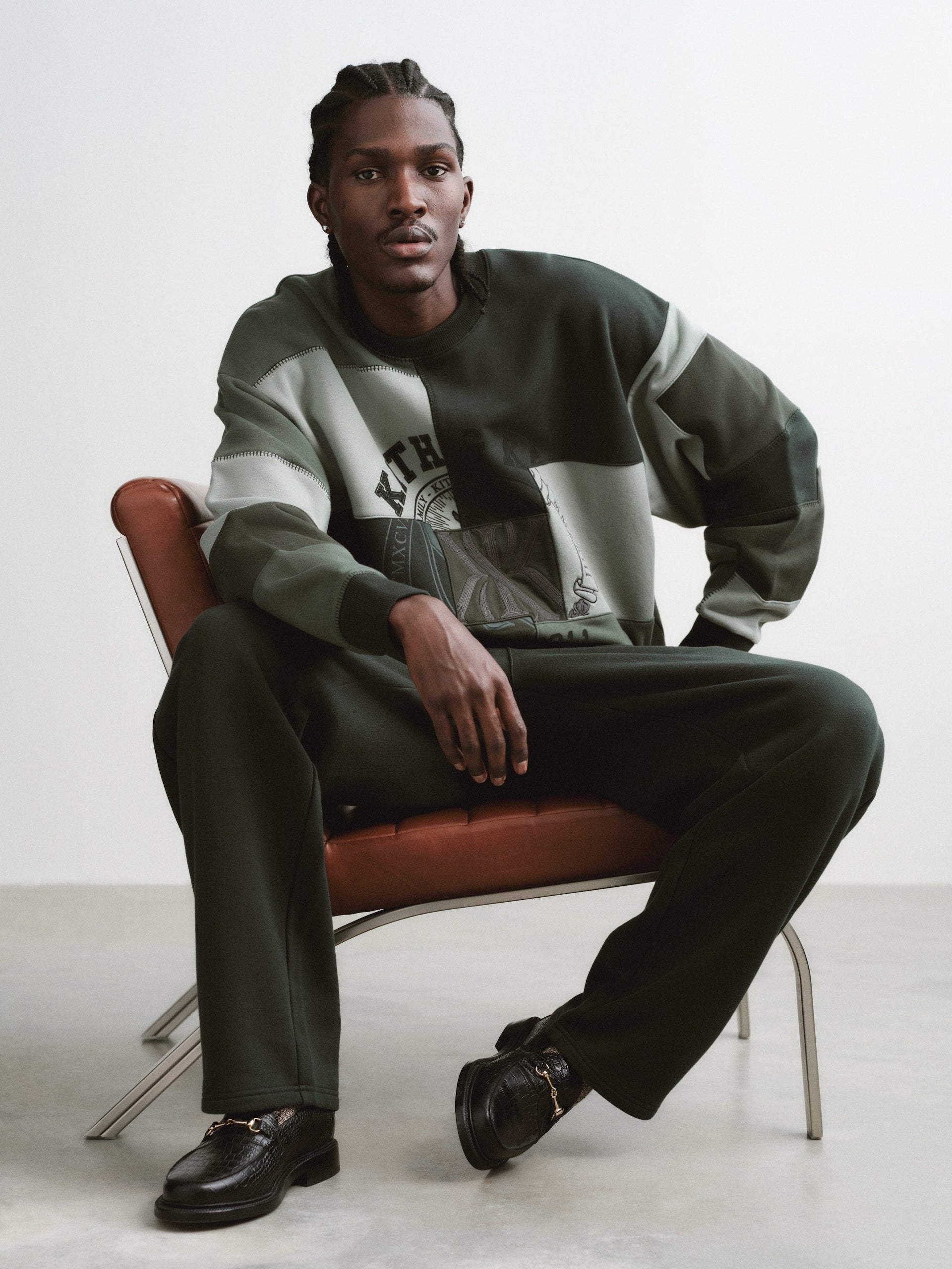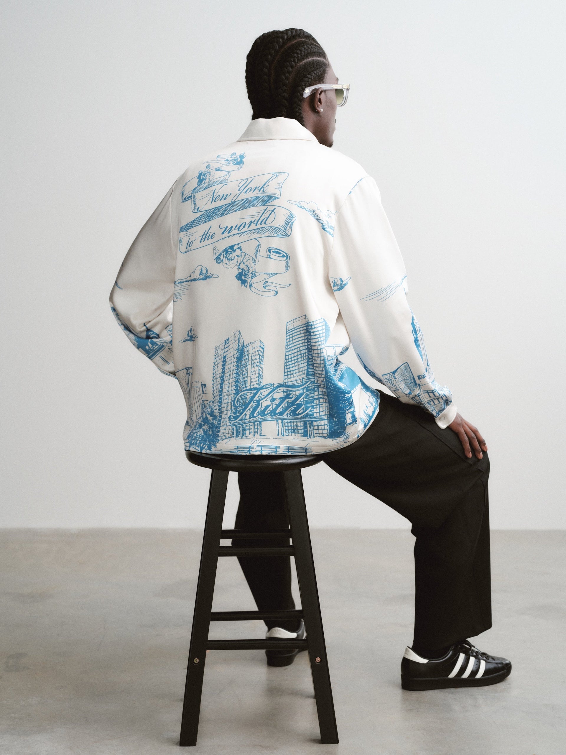 Select designs from past collections return in updated iterations, such as bandana-printed silk with subtle Kith branding seen on scarves, shirts, and outerear, and new scapes are added, highlighted by New York-inspired elements on silhouettes like the Artisanal NY Apollo Shirt, and floral needlepoint on the Scarf Tapestry Coaches Jacket.