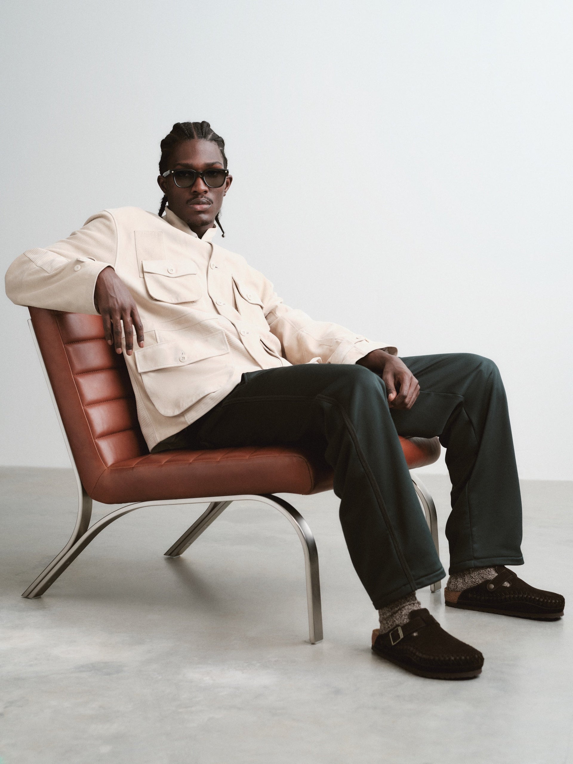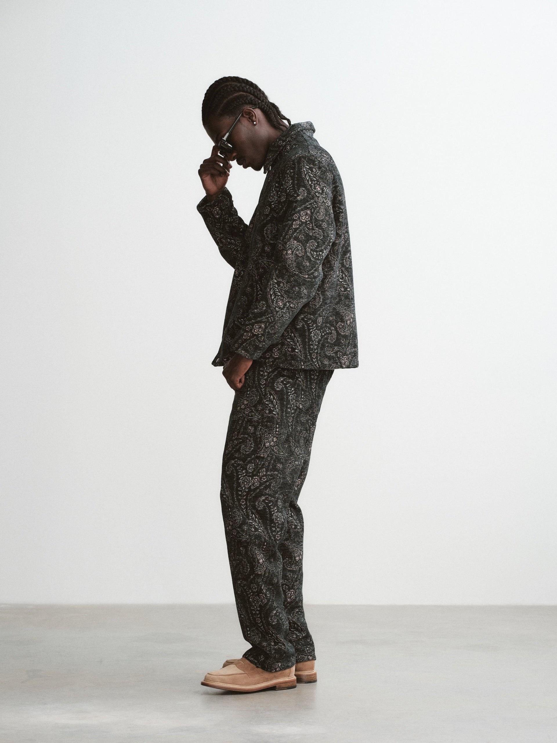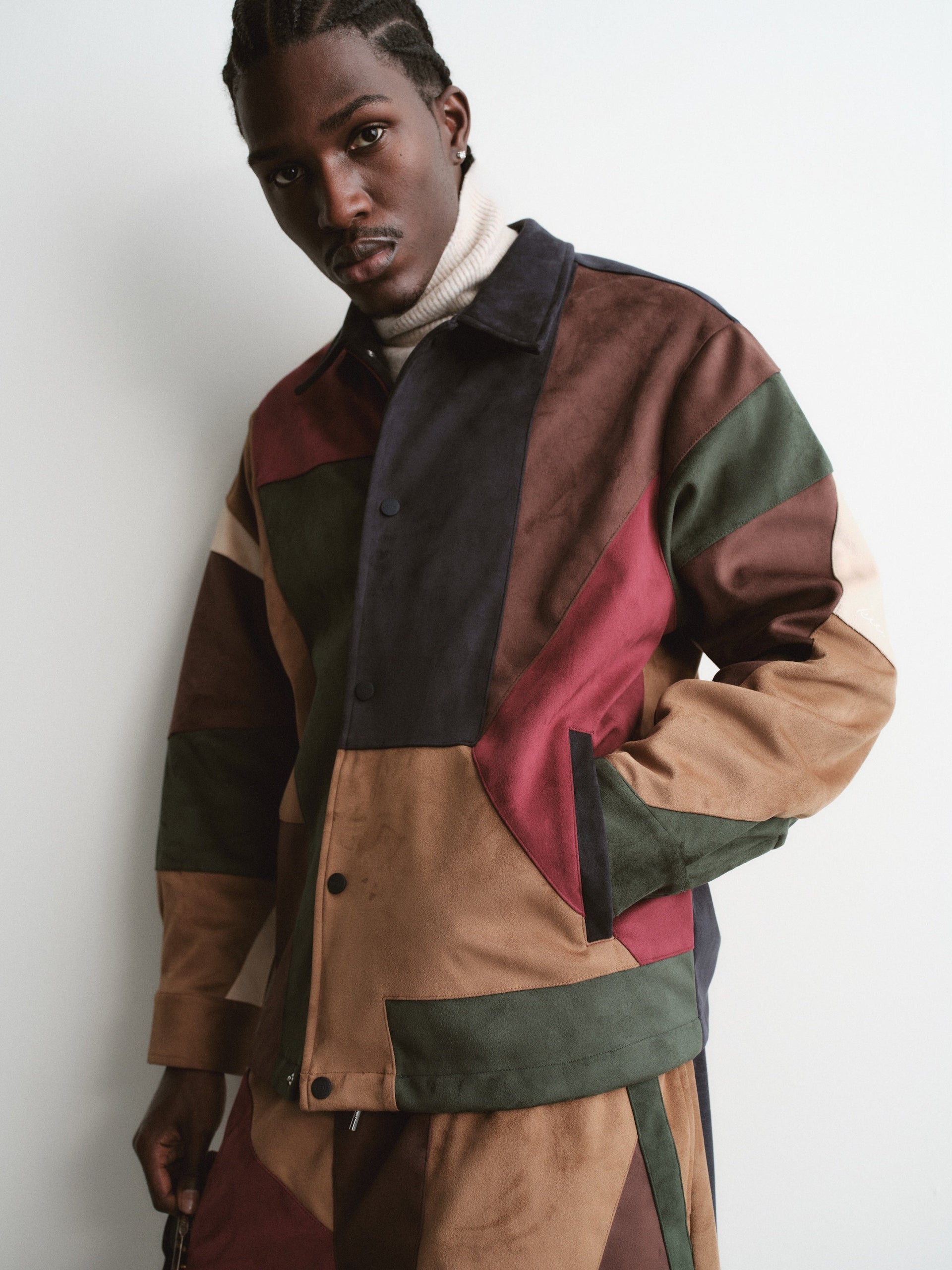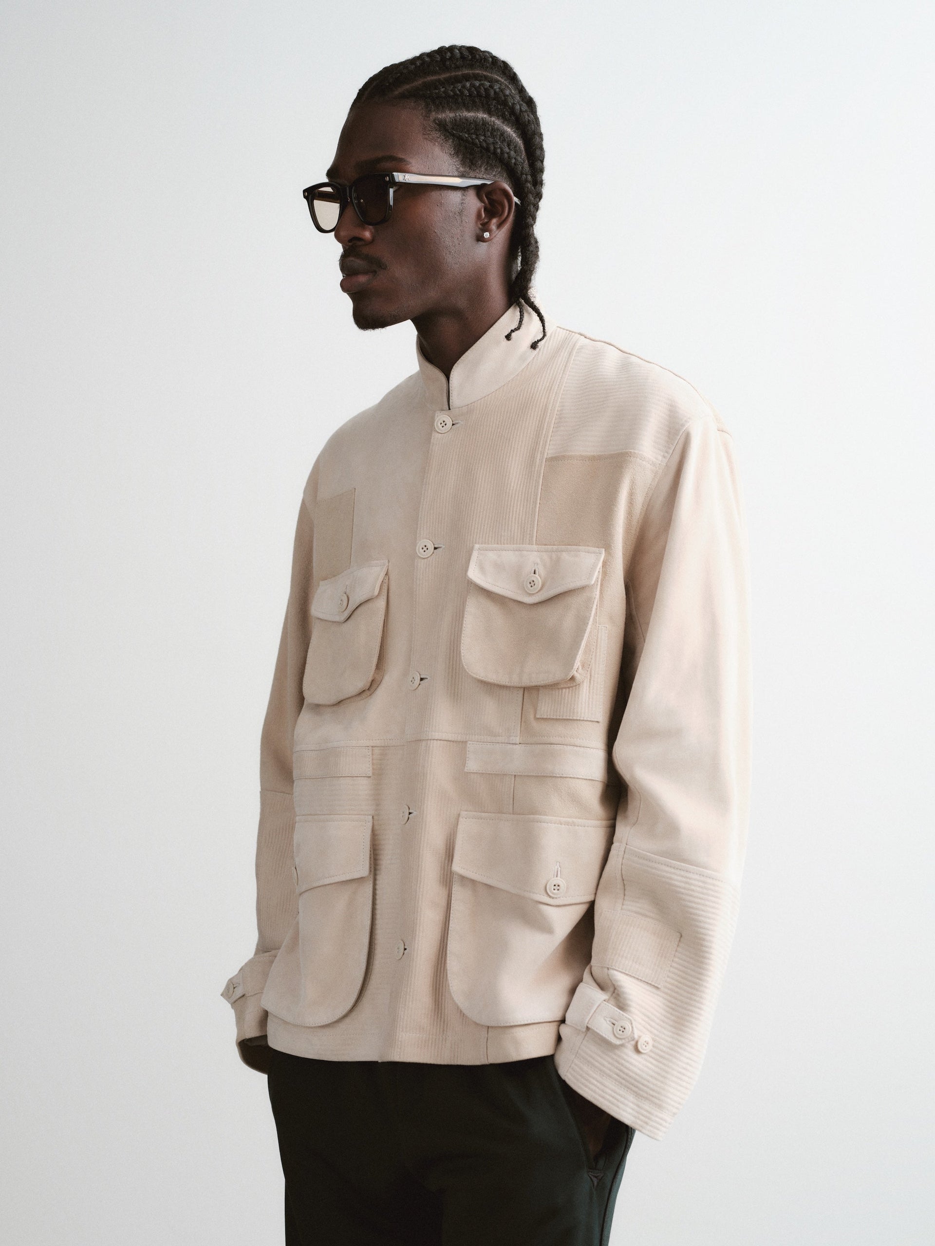Each piece of artwork seen throughout this assortment is designed with meticulous attention to detail, some Motifs hand-drawn like the landscape seen on the Scenic Boxy Collared Overshirt, and others laser-cut and printed such as the Isaac Microsuede Buttondown. Motifs are seen on an array of jackets, tops, bottoms, and accessories.