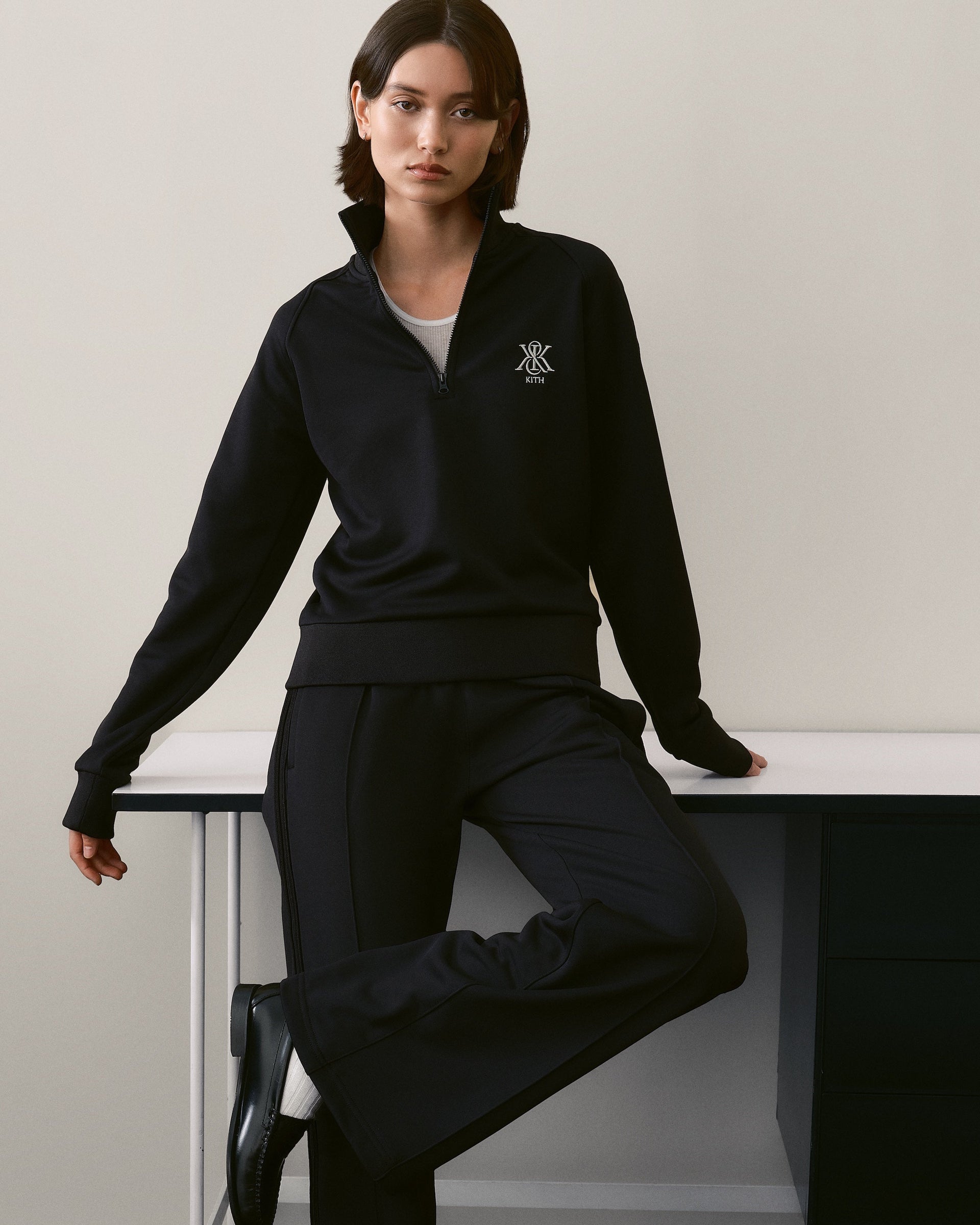 Staple Kith Women silhouettes return for the Fall 2025 collection, including the Ashwin Crewneck and the Chelsea III Sweatpant, both with varsity artwork, the Jane II Hoodie and the Ava Track Pant, updated to be in a garment-dyed and washed iteration, and the Everly Track Quarter Zip, paired with the Marlo II Track Pant. These styles are designed for comfortable yet upscale wardrobing, complete with Kith embroidery and made of premium materials.
