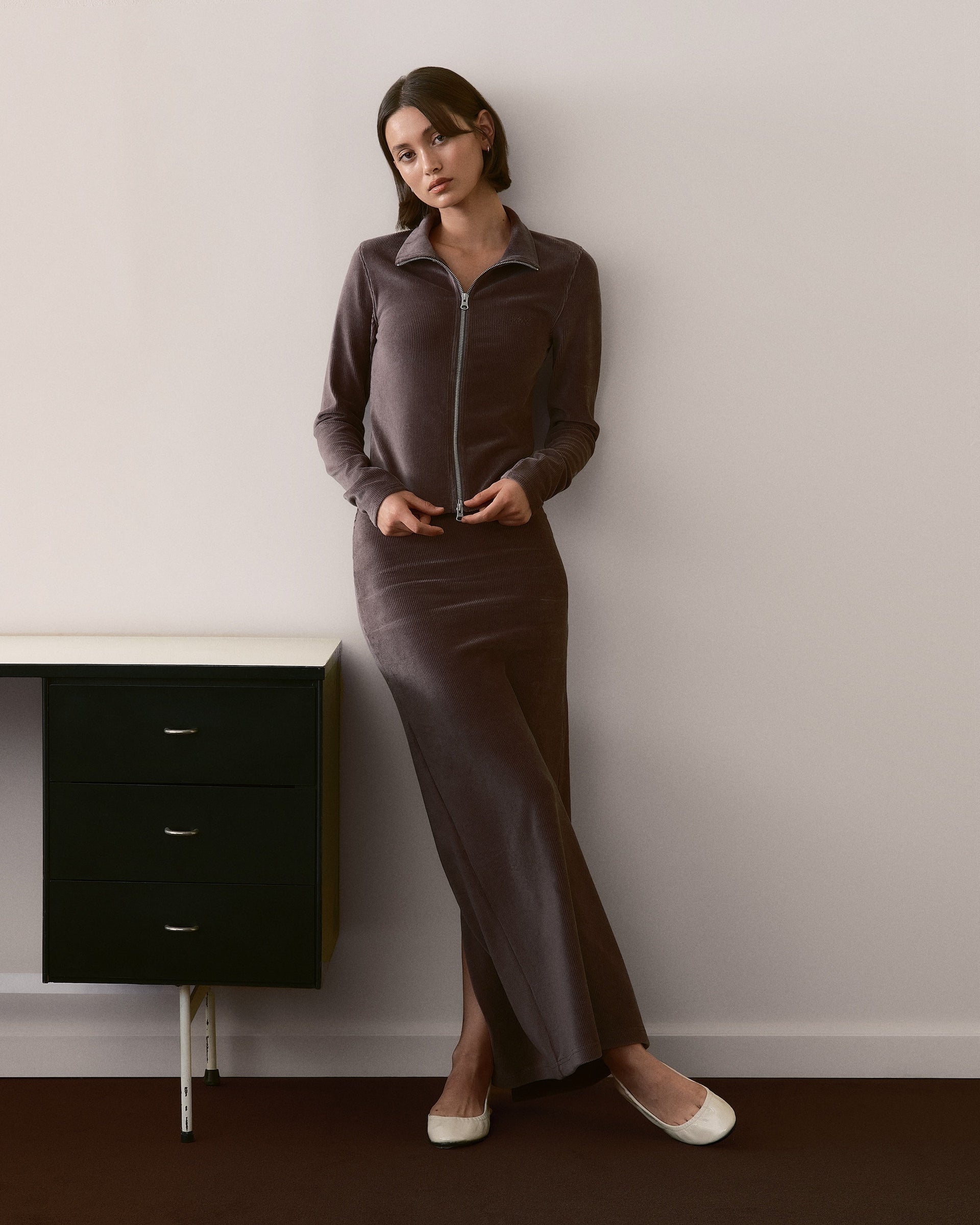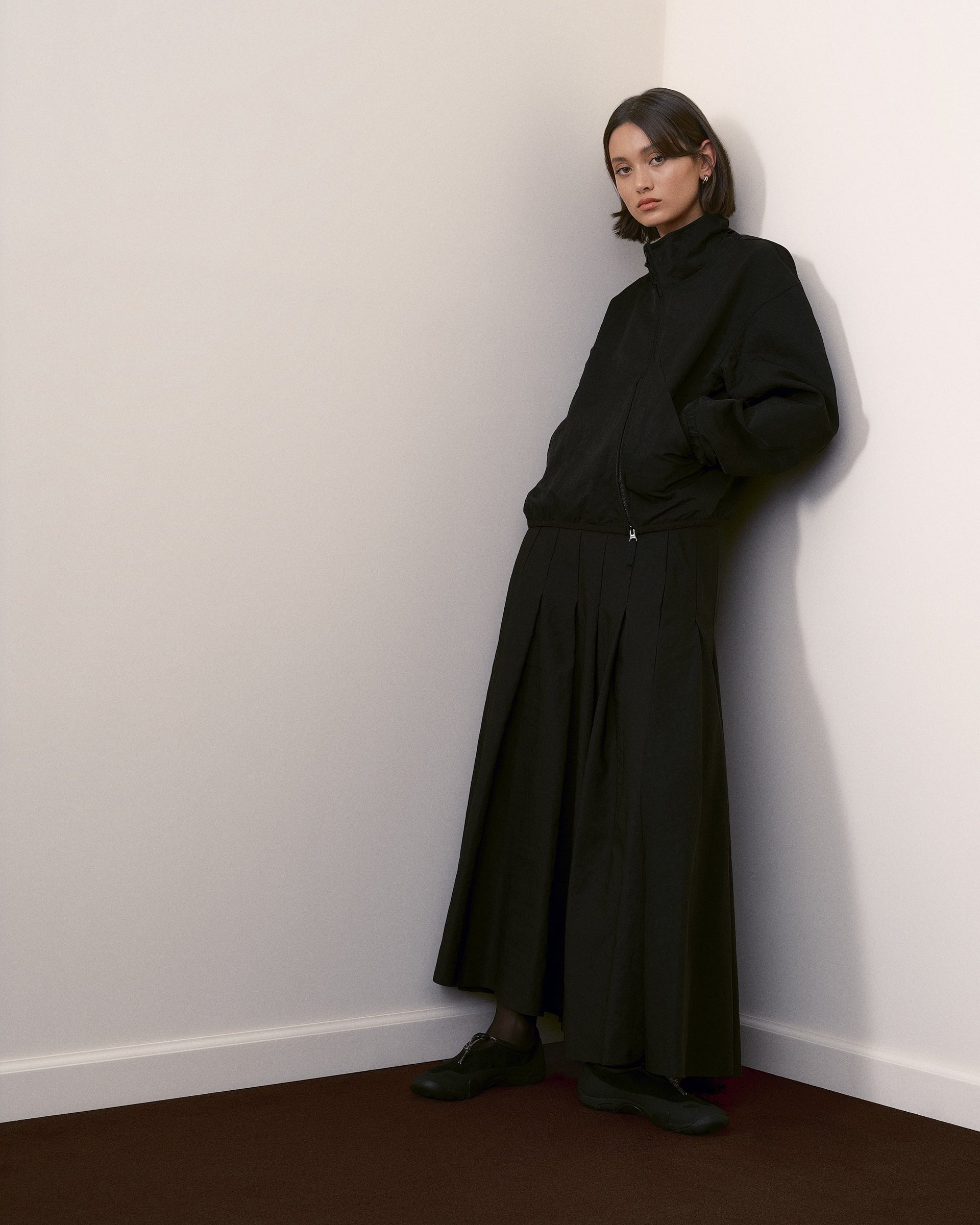 Other standouts from Kith Women Fall 2025 are styles also found in our Knitwear and Elevated Tailoring collections, featuring classic suiting elements reimagined through the Kith Women lens like the Faryn Hooded Zip Up and the Hana Pleated Sweater Skort, and the Ora III Sweater Shirt, crafted of shadow double-stripe twill, and the Emira Pleated Micro Skirt, complete with buckle tab detailing and a pleated composition.