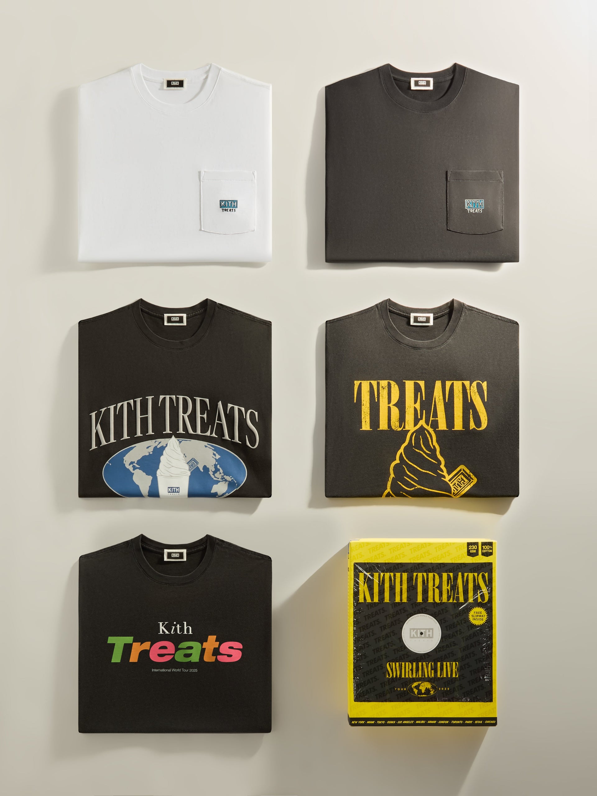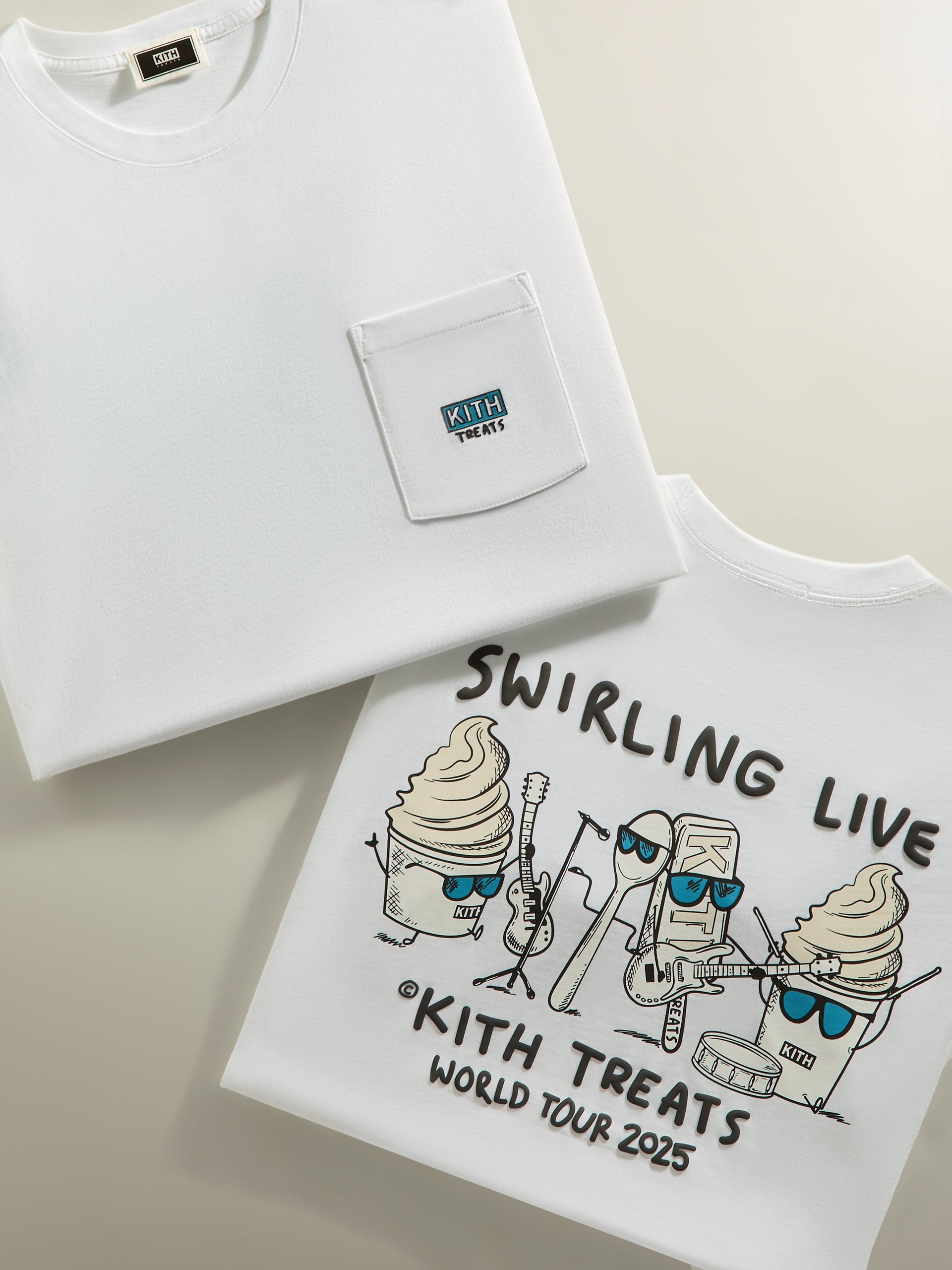 Coming SoonKith Treats presents Treats Swirling Live—a collection of graphic tees that pay homage to classic rock n’ roll iconography. The collection's title references the performance visitors experience at Kith Treats ice cream bars, where cereals & mix-ins are transformed into custom ice cream flavors in real time.