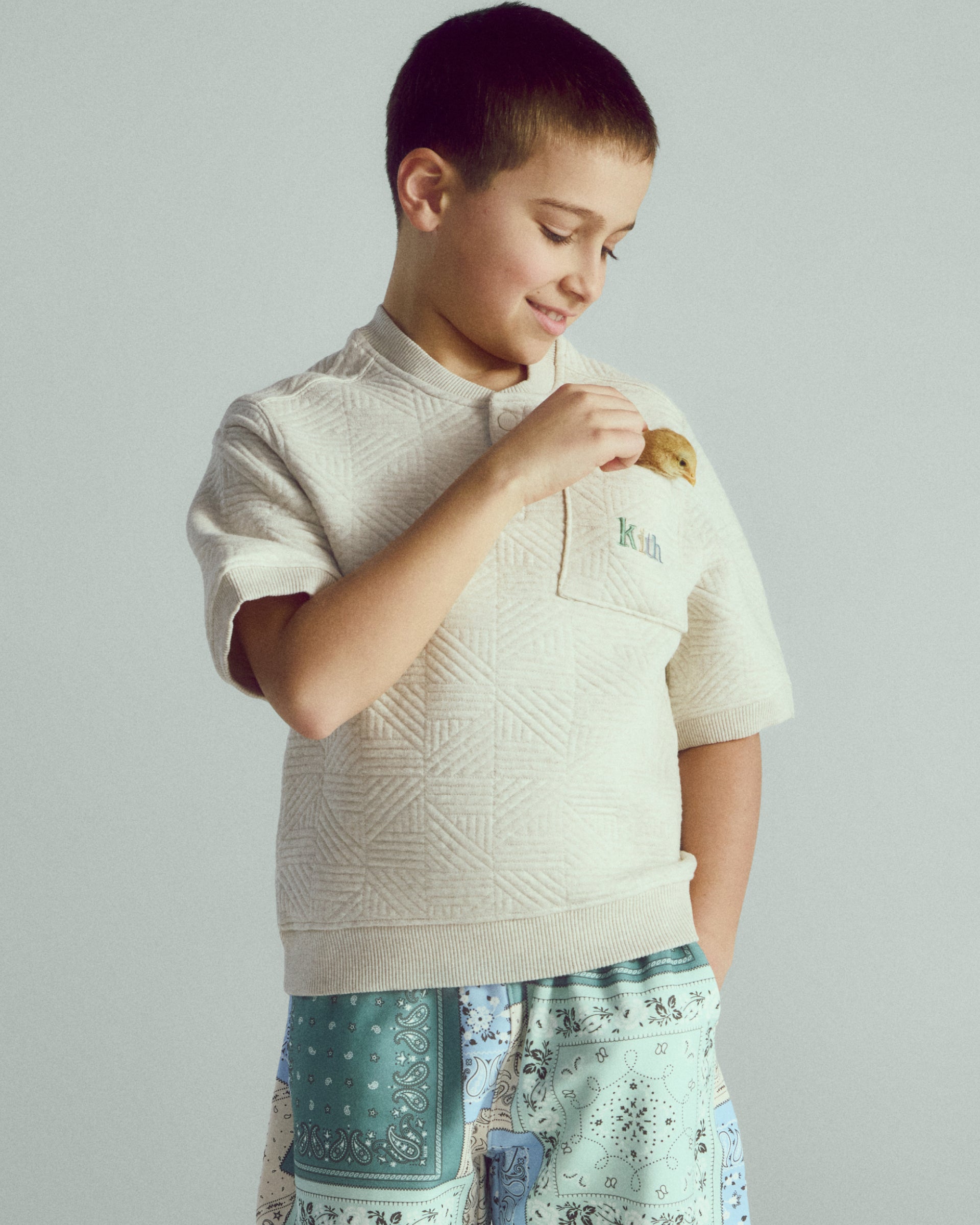 Shop summer tops from Kith Kids & Kith Baby, including button ups, tees, tank tops, hoodies, polos, and lightweight sweaters. Explore all-over embroidery on the Camp Shirt, subtle Kith branding on the Classic Mott Tee, and Kith Monogram jacquard on the Monogram Pullover Terry Polo.