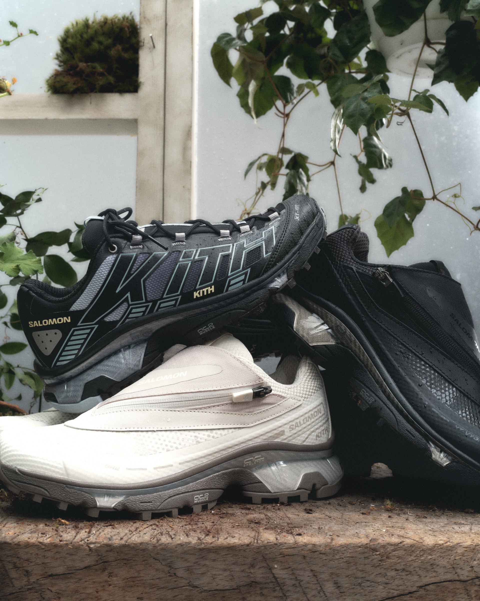 Kith and Salomon reprise their partnership for Spring 2026 with the return of the XT-Voyager 2 and XT-4K. Both styles balance Salomon’s technical utility and a sculpted design, engineered for enhanced stability and traction. The XT-Voyager 2 features a ripstop upper with a co-branded shroud, hex camo print, and breathable mesh underlays, while the XT-4K arrives in synthetic leather, spotlighting Kith wordmark branding, and gradient undertones.