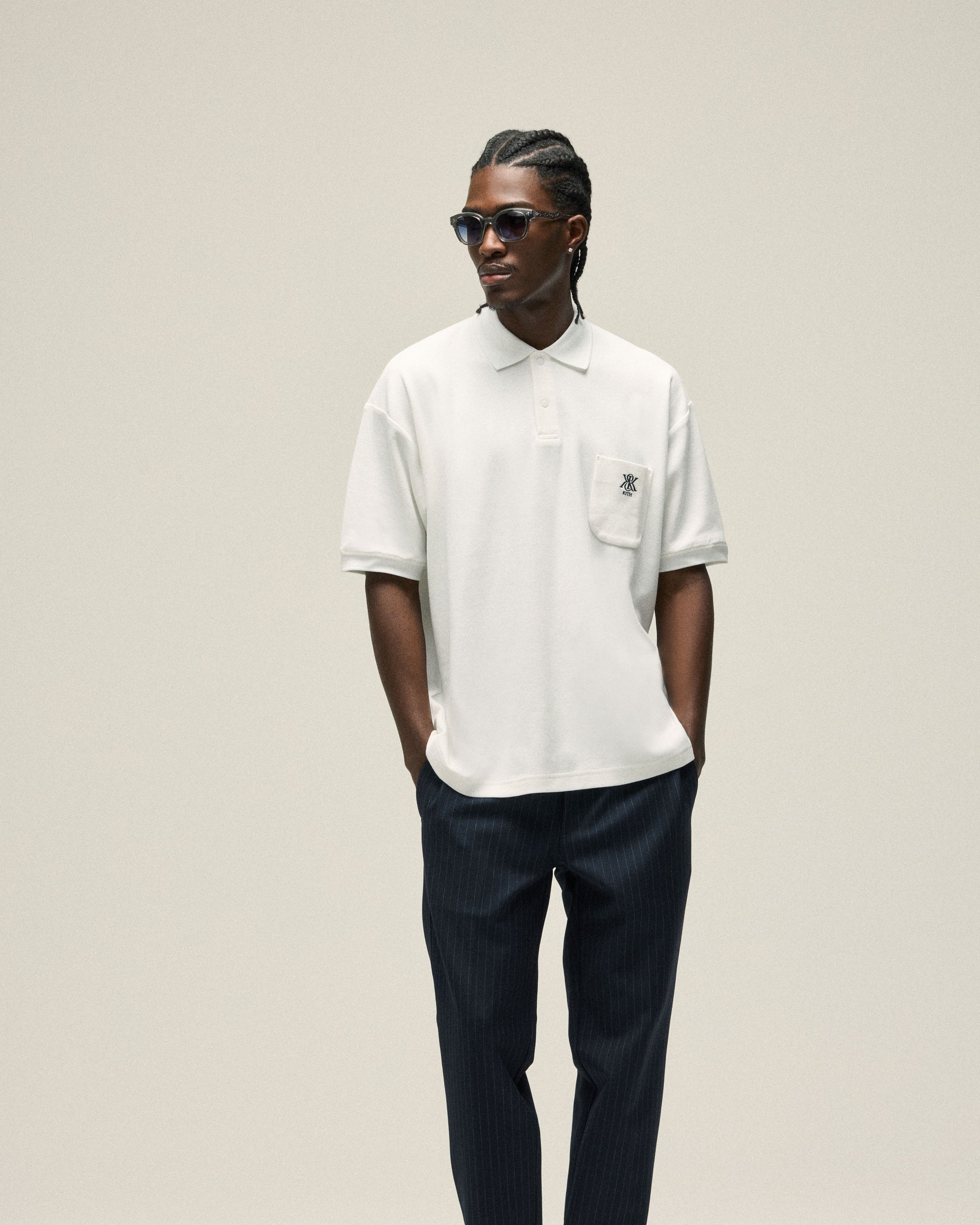 Kith Pinstripe Tricot Panelled Long Sleeve Tap In Polo€150.00