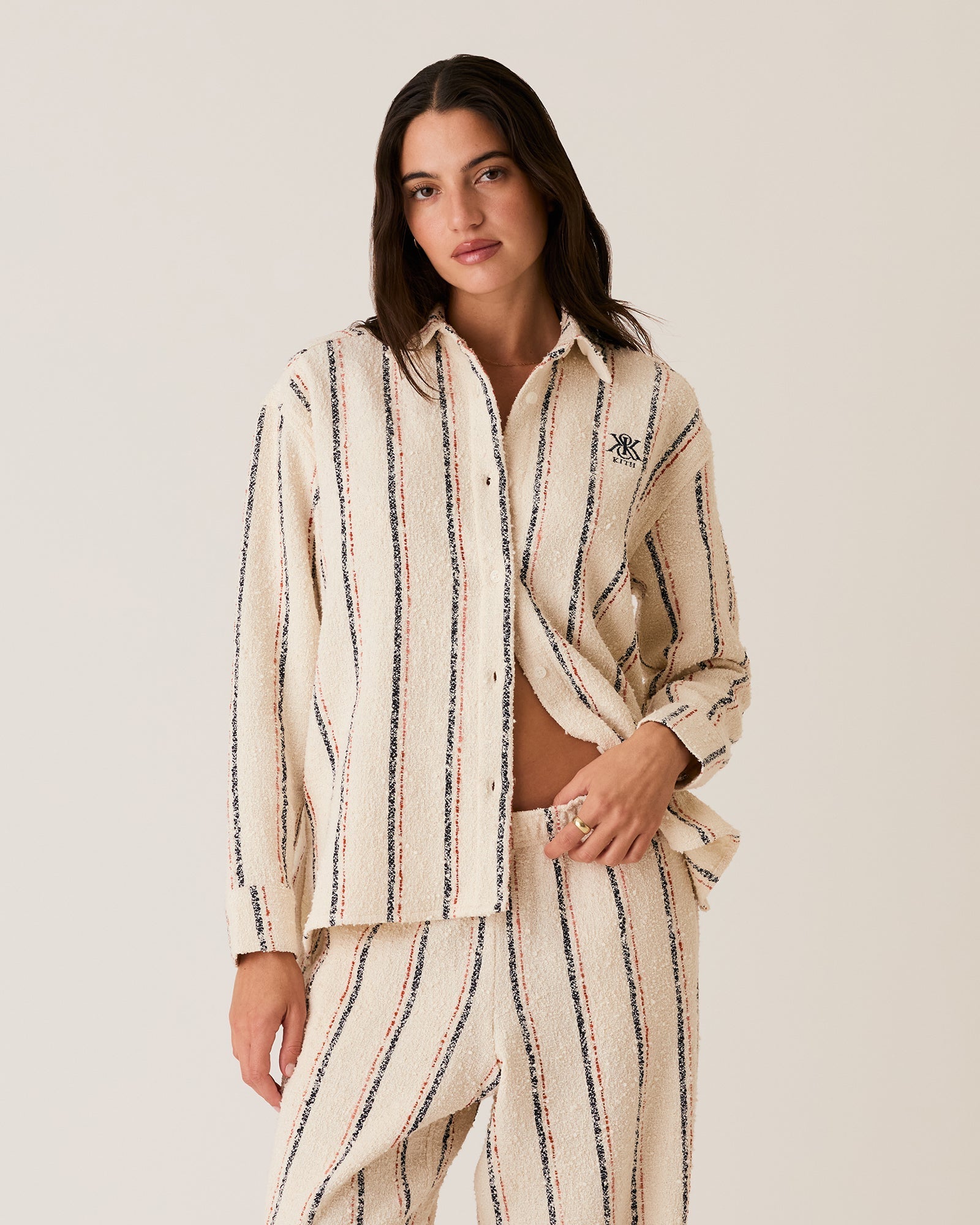 Explore the Spring 2025 collection from Kith Women, defined by transitional basics, spring-ready outerwear, and occasionwear designed with an emphasis on texture. From patchworked favorites like the Brisa Bomber Jacket and the matching Miren Pant & Carmel Micro Skirt, to the pleated Rory Coat and the Nova Ripstop Windbreaker, this assortment features a variety of seasonal must-haves.