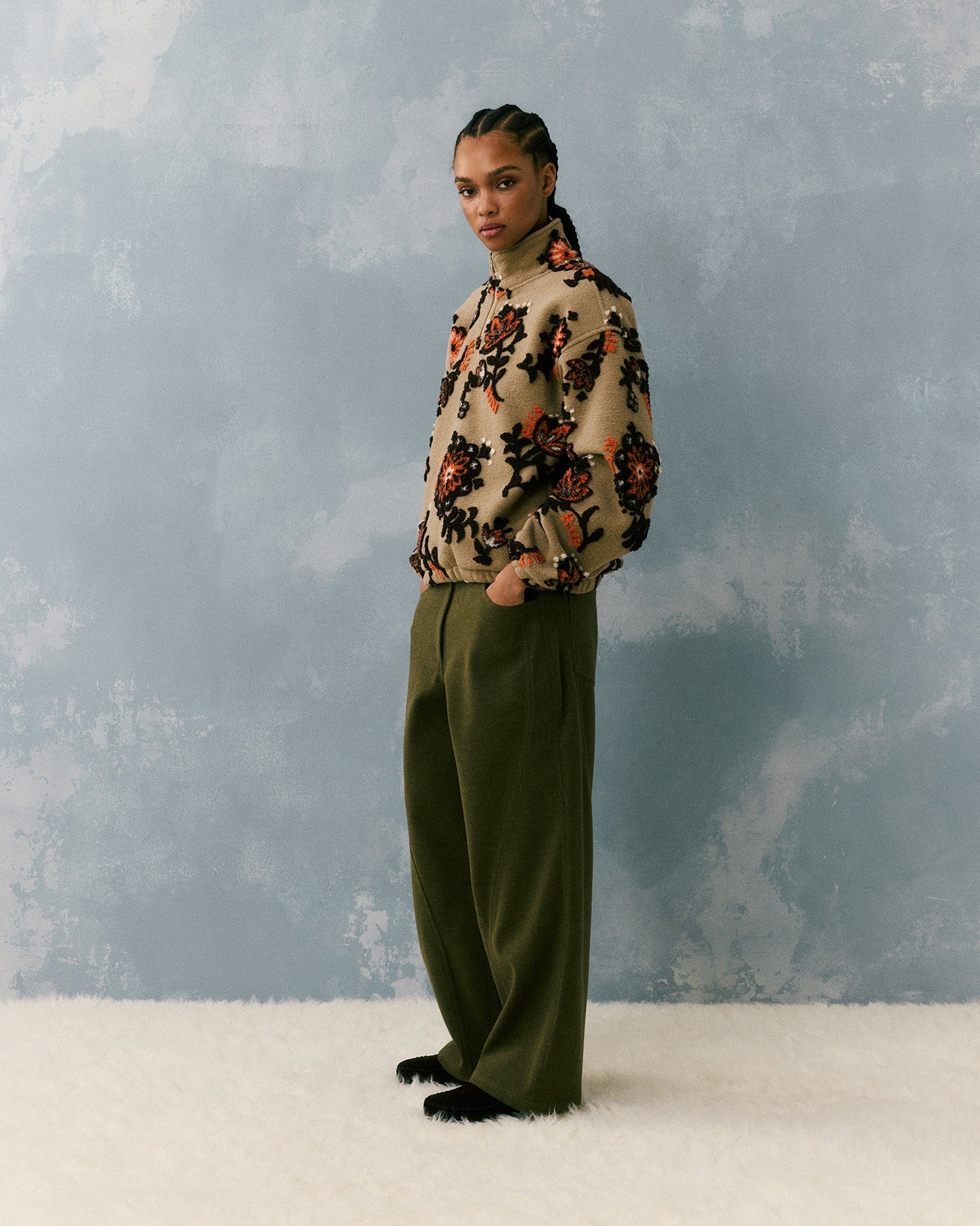 Shop the accessory assortment from Kith Women Winter 2024 Delivery II, including seasonal headwear designed for matching moments like the Toshi Teddy Oversized Fur Hat, the Blanket Stitch Microsuede Bucket Hat, and the Jacquard Fur Headband.