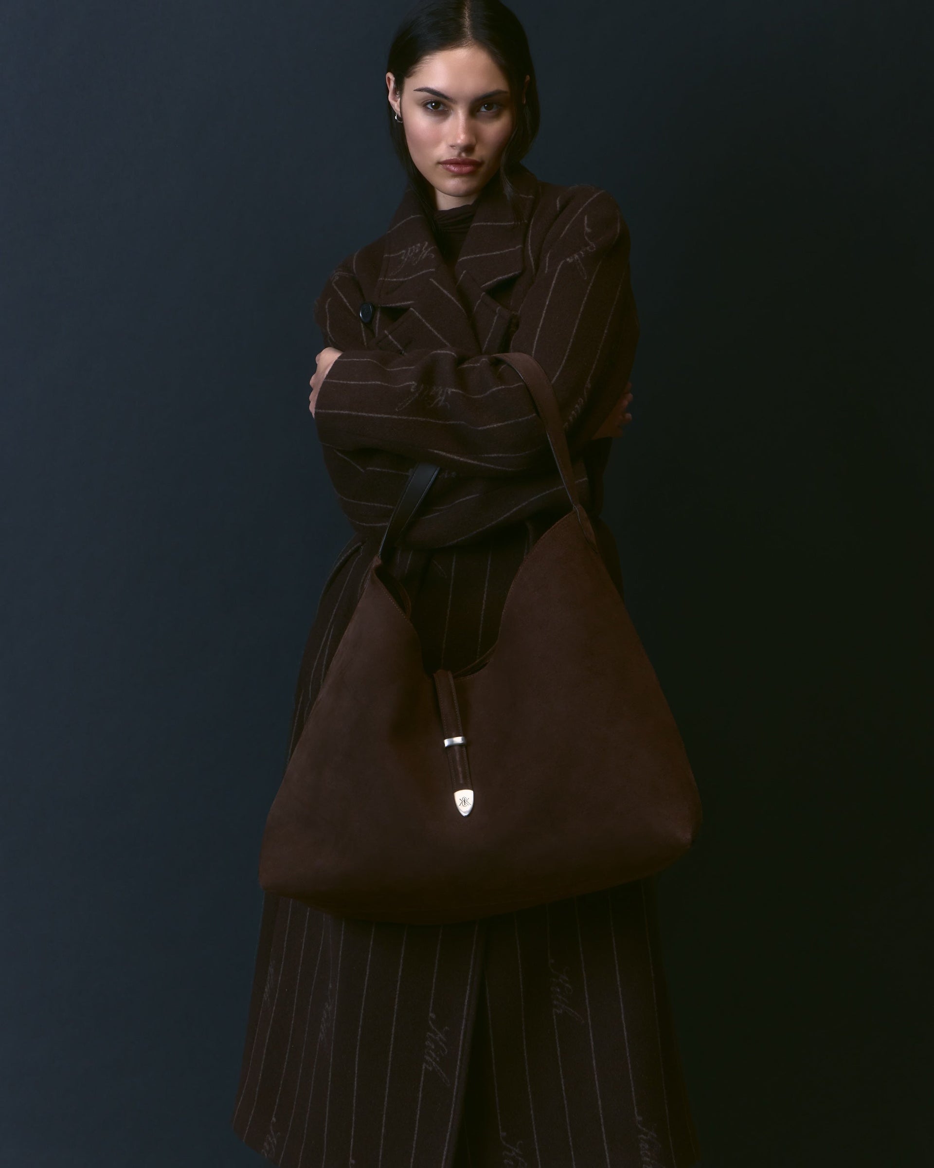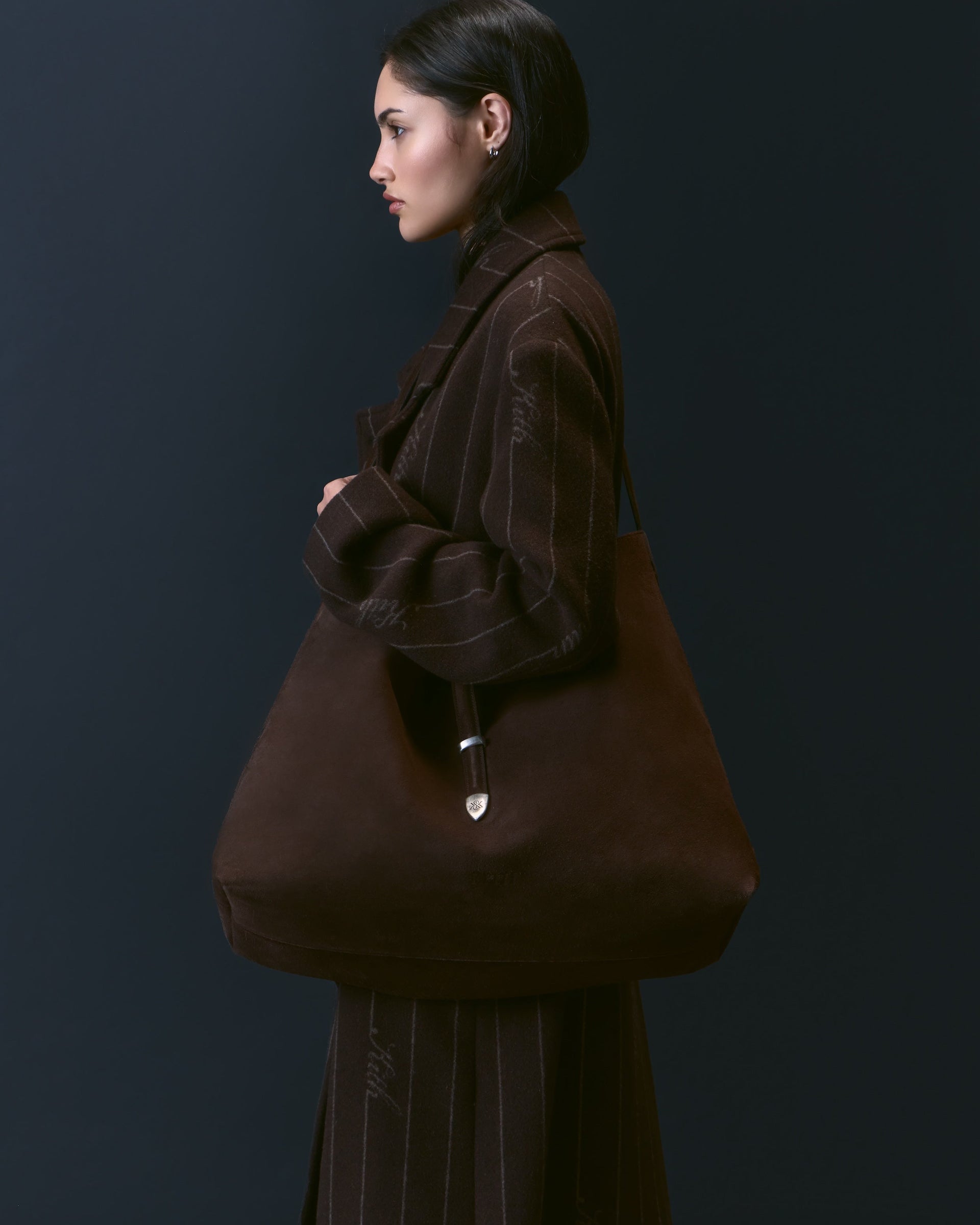 Designed to fit everything you need from when you leave the house in the morning to when you return later that evening, the Luna is made of premium suede in the Incognito hue, making it the perfect everyday staple. It has a tipped strap for security, Kith-branded hardware, and a structured handle with a long drop for comfort. Additional bags from Kith Women Winter 2025 include Tile Applique iterations of the Beatrix, an east-to-west style baguette bag, and the Harlowe, a vintage-inspired document silhouette, along with classic Kith Monogramming on the Kathryn, Beatrix, and Harlowe.