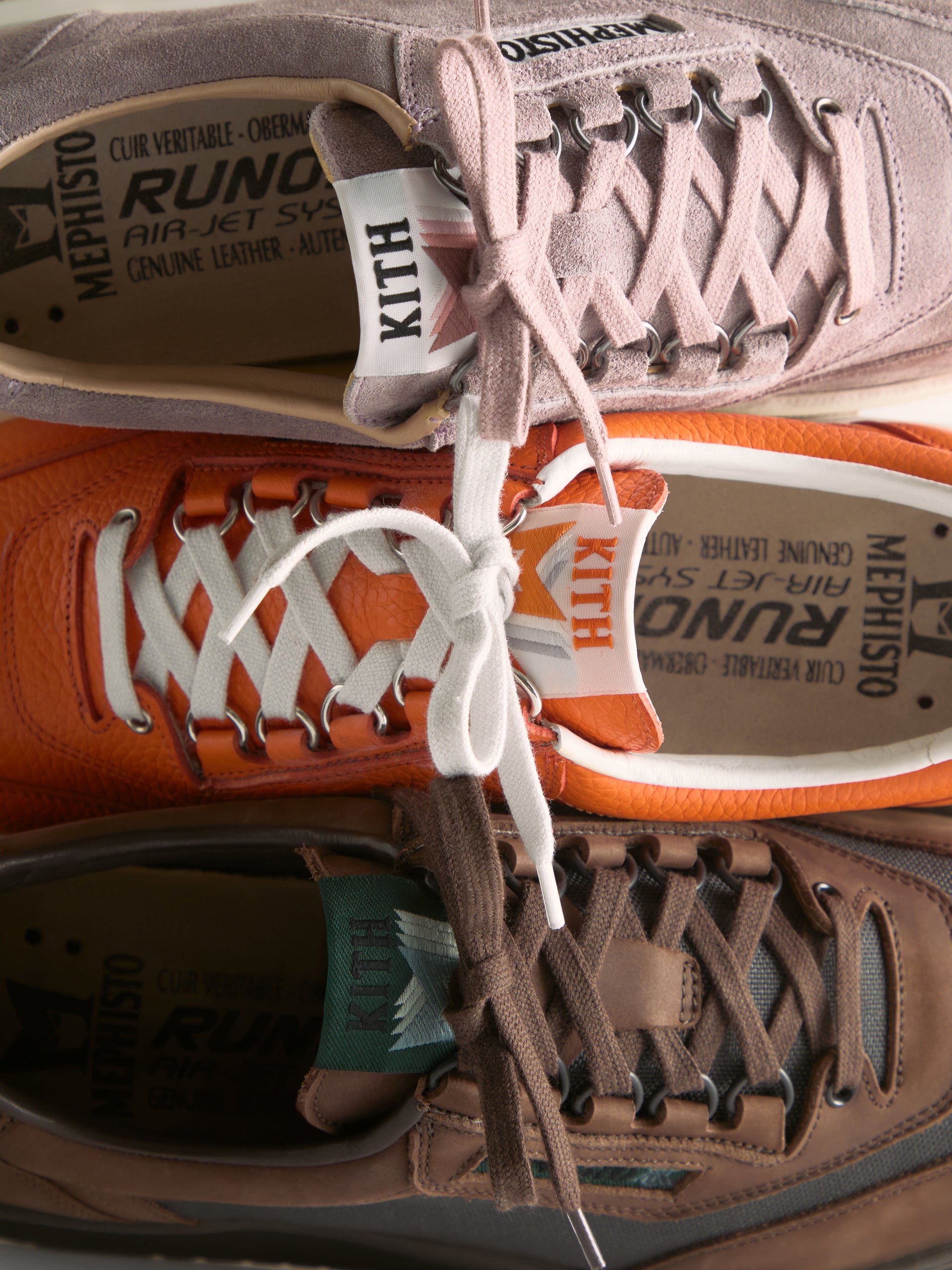 Founded in 1965, Mephisto was born from a similar idea as Kith—to create the best shoes in the world. For over sixty years, they’ve utilized artisans in France to produce each silhouette in their original factory, made from long-lasting materials such as pebbled leather, suede, and synthetic canvas.